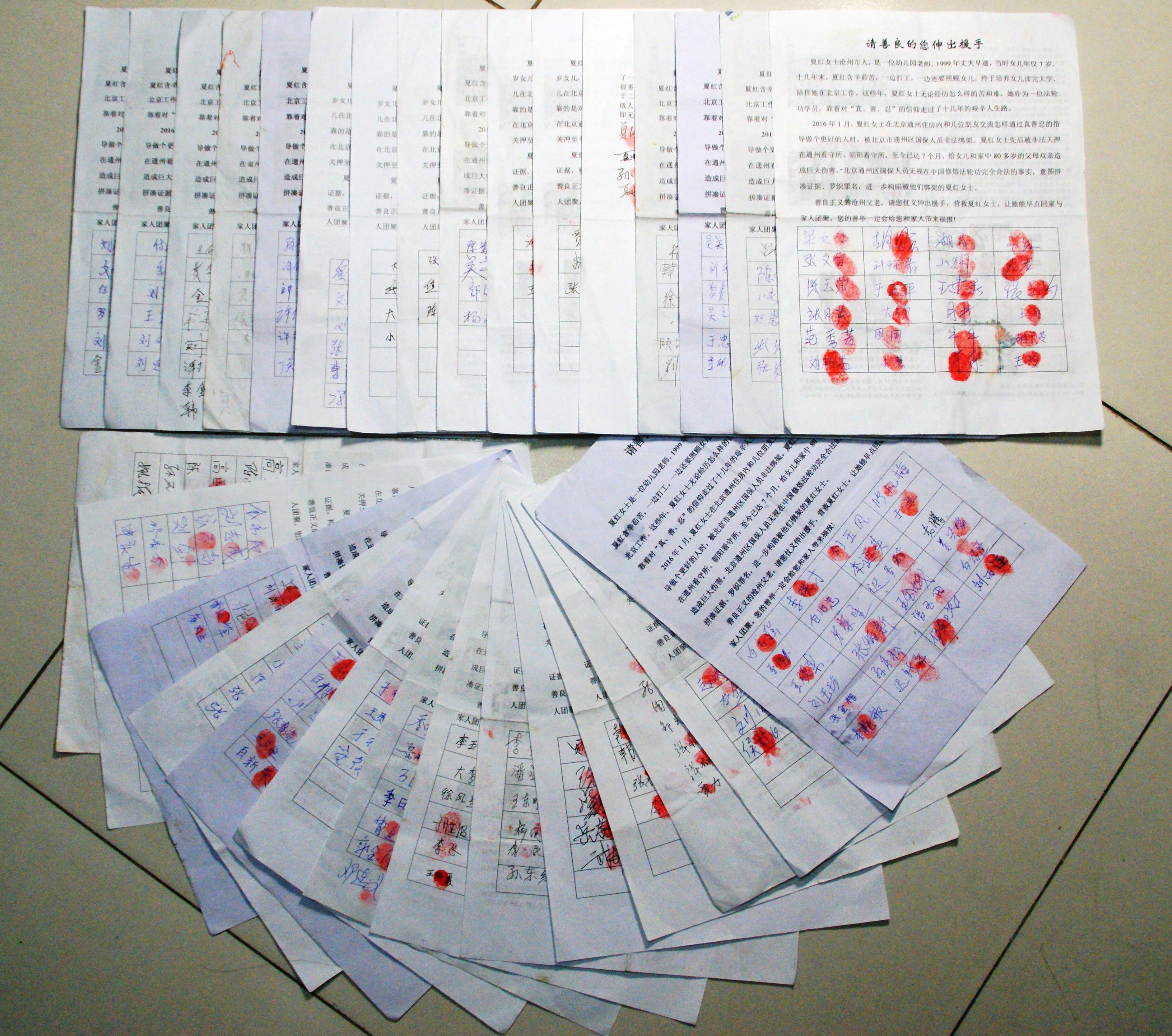 ![]() 600名家乡父老以签名按手印的方式要求释放夏红女士 |