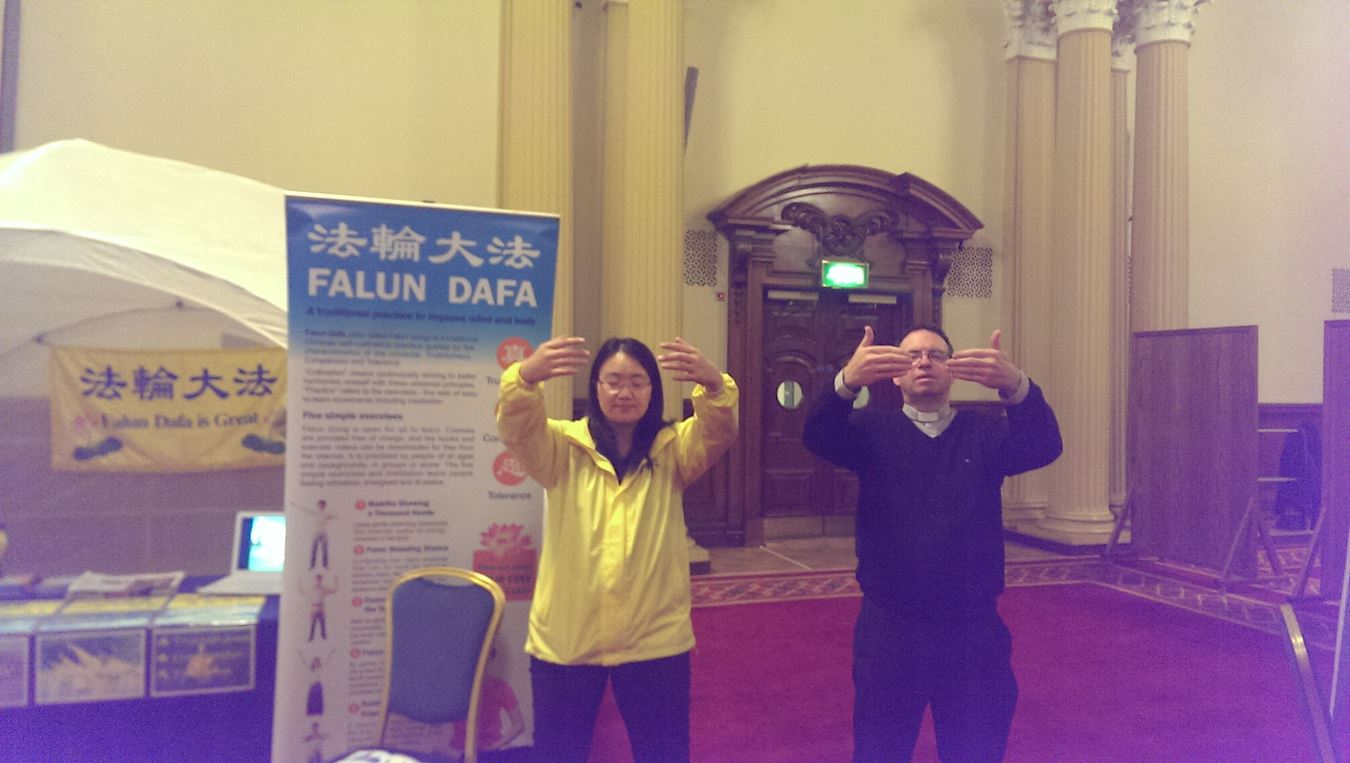 马丁·麦吉尔(Martin Magill)是一名教区牧师(parich priest)。他被法轮功祥和的炼功动作所吸引,非常迫切地想了解法轮功修炼功法以及迫害真相。当他听闻很多法轮功学员因为修炼大法,无病一身轻等神奇经历之后,他表示要现场学功。由于活动时间有限,马丁只学了三套功法,但他表示,他一定会去法轮功教功点继续学炼法轮功。