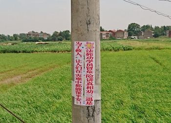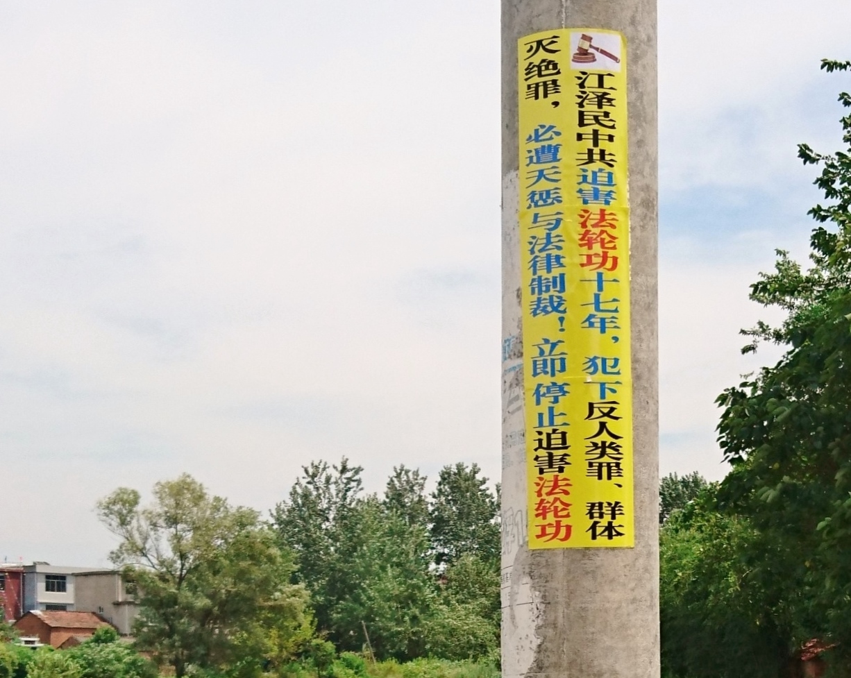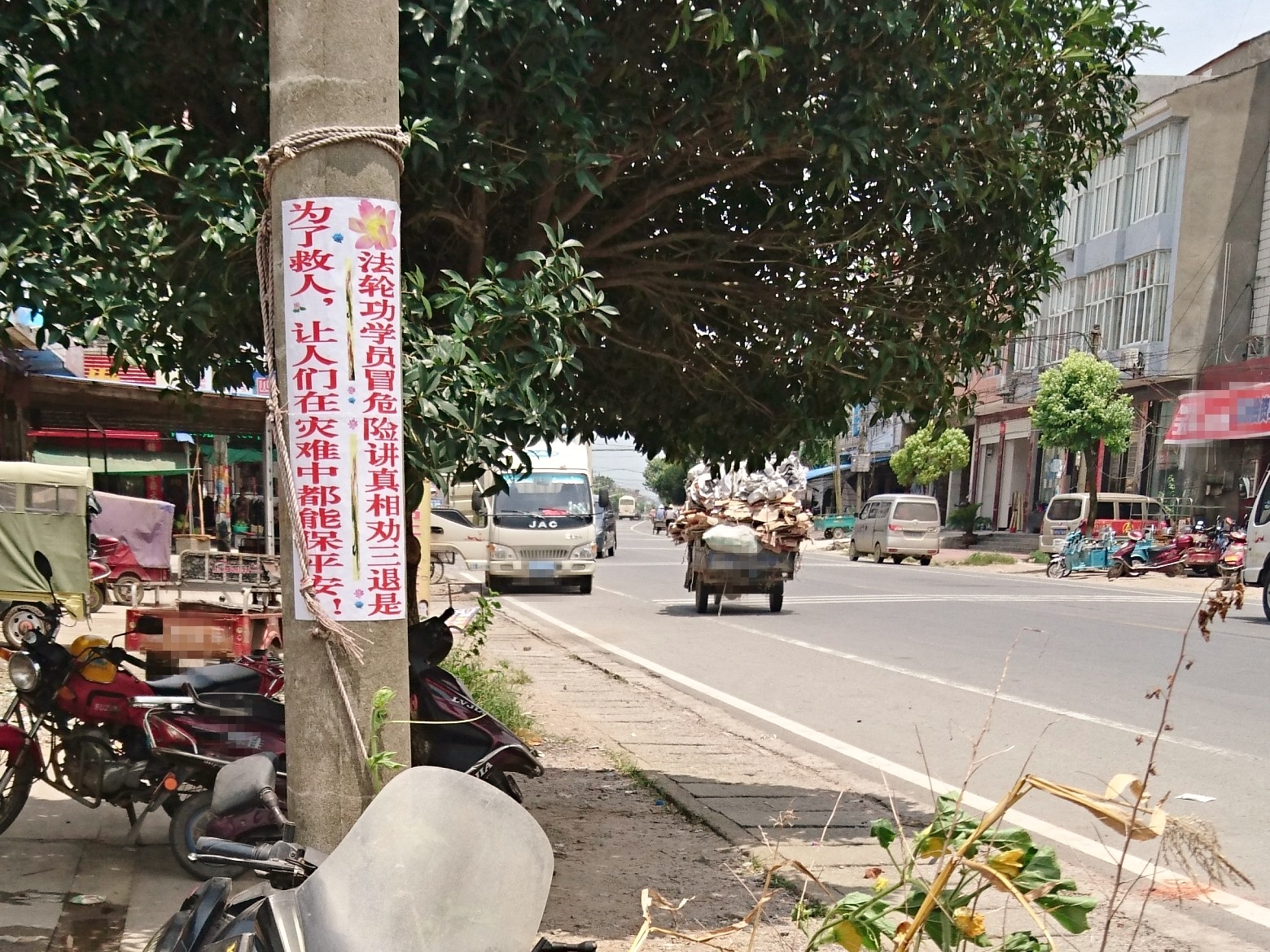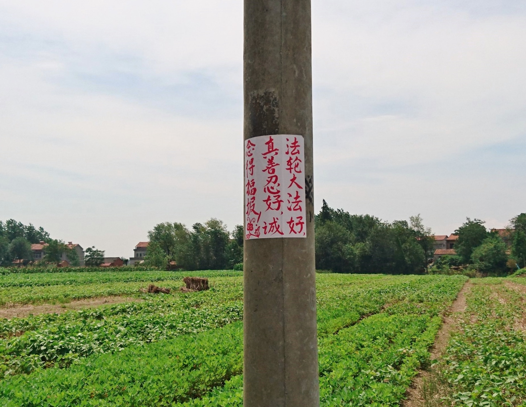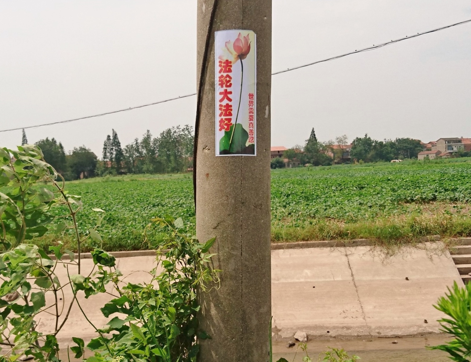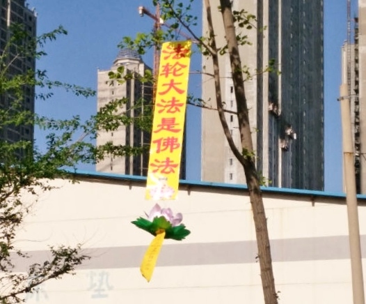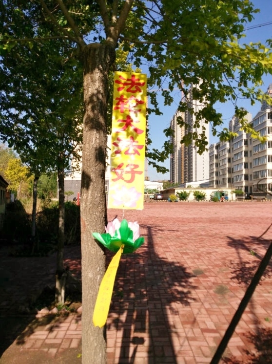 吉林街头现六米长明慧展板广传法轮功真相湖北省黄冈市黄梅县田间地头、居民区的真相标语辽西某地的树挂和展板传递“法轮大法好”“法轮大法好”在辽宁铁岭大明镇传播
