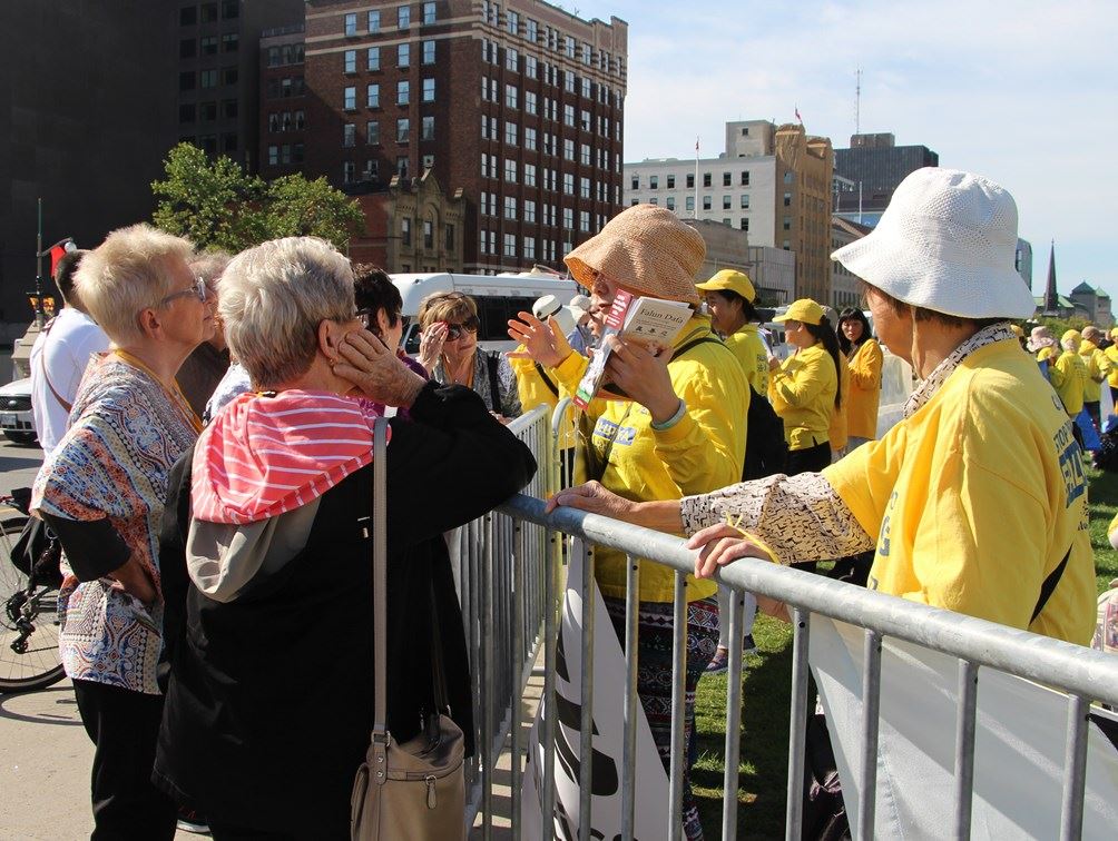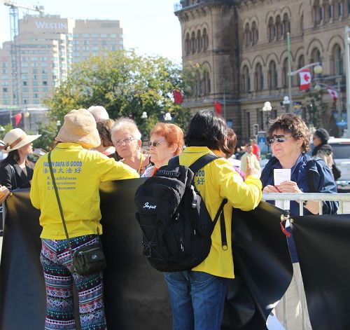 一位不愿透露姓名的大陆移民路过法轮功学员的横幅时,对他们说:“我支持你们。”当记者问他是否知道法轮功学员在中国被迫害,他大声说:“有良知的人都知道。”