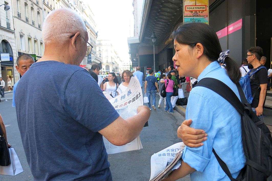 一天法轮功学员遇见一位警官的妈妈,回答了这位老年游客几个问题后,这位游客说:“我儿子做狱警很痛苦,一直想离开,当警官是听他爸的安排,肯定会选择离开邪恶的。”这位狱警的妈妈登记了退!党!,在巴黎喜结了善缘。