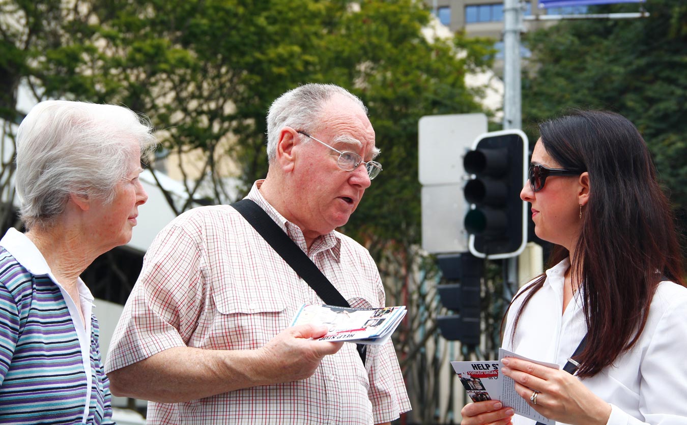 新闻发布会后,学员们继续在现场向过往行人讲真相,不少人在致澳洲总理的明信片上签字,支持法轮功学员和平反迫害,并希望这场对善良民众的迫害早日结束。