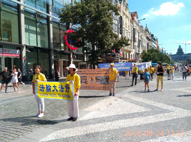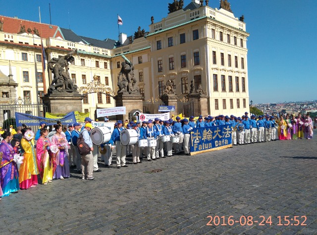 《捷克新闻通讯社》(CTK)当天(8月24日)15时45分发布跟踪报告,并附有现场照片。视频中说:因法轮功被迫害,布拉格人向中国发出呼吁。今天,法轮功在中国驻布拉格大使馆前进行抗议集会,有来自十个欧洲国家的几十名成员组成的(法轮功)军乐队演奏,很多法轮功学员拉横幅举标语牌,抗议在中国强迫摘取器官和迫害法轮功。