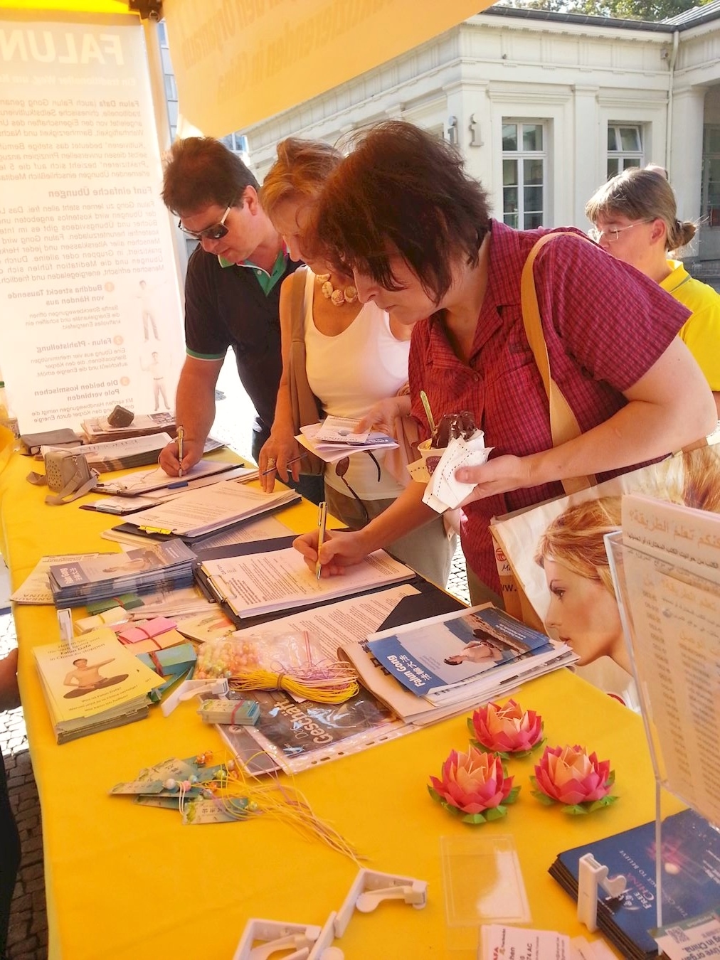 图2:德国“亚琛协会活动日”上,民众签名声援法轮功反迫害