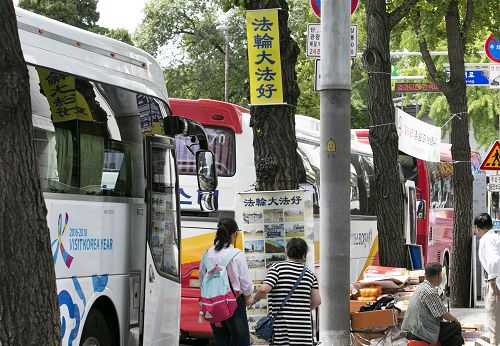李庸和提到,跟以前相比,大陆游客的变化很大,很多人喜欢听法轮功学员讲述的真相、接资料。他说有些中国游客,一开始不接真相资料,但坐上车之后会重新下车主动要资料。也有中国人避开阻止自己的导游,悄悄走过来拿一份资料,塞进包里;还有很多人一起看真相展板,相互谈论自己的见解。也有游客虽然不接资料,但会用手机把展板上的内容拍摄下来。李庸和说每个景点都有展板、传单、报纸等资料,也有法轮功学员面对面讲真相,这些多种多样的方式让中国大陆游客出国一次,可以了解很多真相。