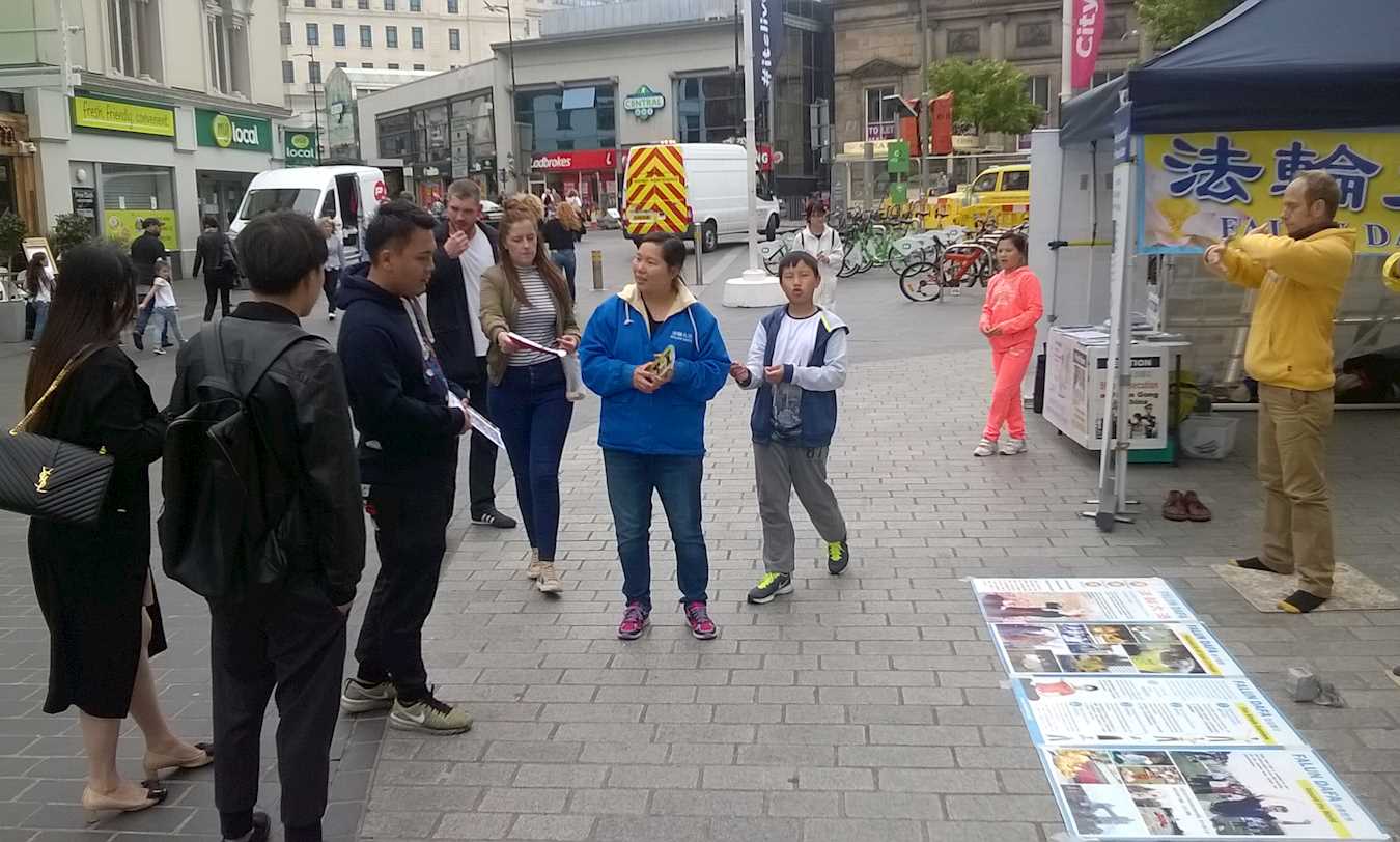 一位年轻的女士读了很长时间的真相资料,并与学员交流。她在反活摘征签表上签名后说,她会把中共活摘法轮功学员器官的真相分享到她的社交媒体上,让更多人知道。她告诉学员,在她的社交媒体上有超过一百万的跟随者。当学员送给她一朵纸莲花时,她非常感动。