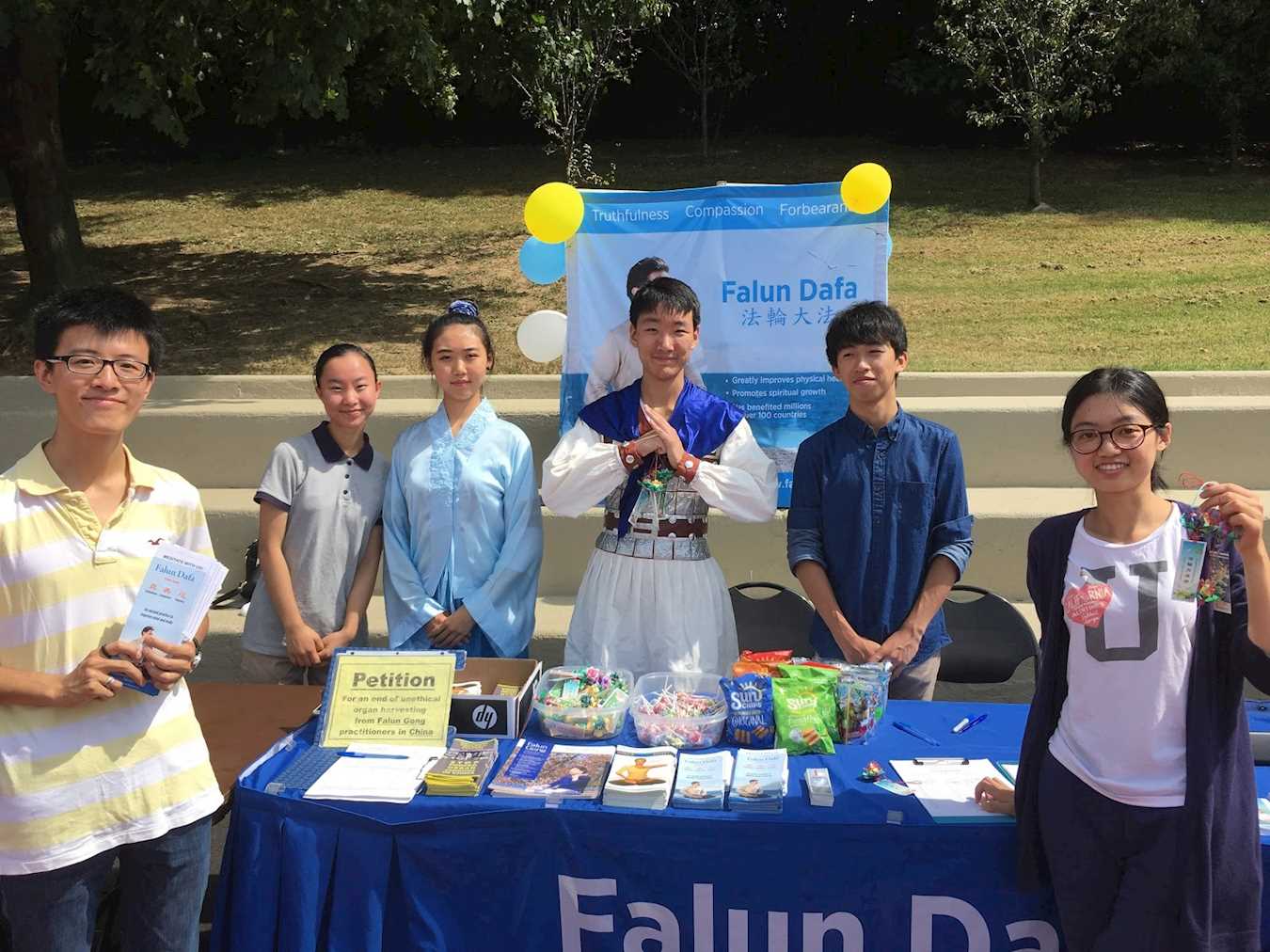 “法轮功之友”社团展桌亮眼大气的布置,让“法轮功之友”成为五十个参展社团中最受瞩目的一员。来自中国的古老修炼功法与“真、善、忍”的普世理念,吸引了不同族裔的大学生们前来咨询,而法轮功学员十七年来和平反迫害的坚持也令众人感动。人们纷纷在制止活摘的征签表上签名,有近四十人在填写报名表申请加入“法轮功之友”社团,约三十人留下联系方式,希望今后更多了解法轮功。