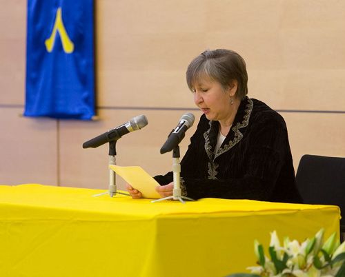 ![]() 图1~3:西人法轮功学员在法会上交流心得体会 |