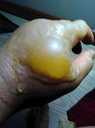 我当时火烧的脸很吓人,脸肿的变了形,手和脚也都烧伤了。当晚我丈夫下班回家才知道我被烧伤了,我跟丈夫说:你放心吧!师父既然能给我灭火消灾,就一定会给我调理烧伤,我会很快就好起来的。你看我烧的这么严重,却一点也不疼,这就是大法的神奇。
