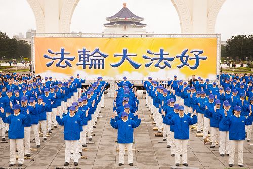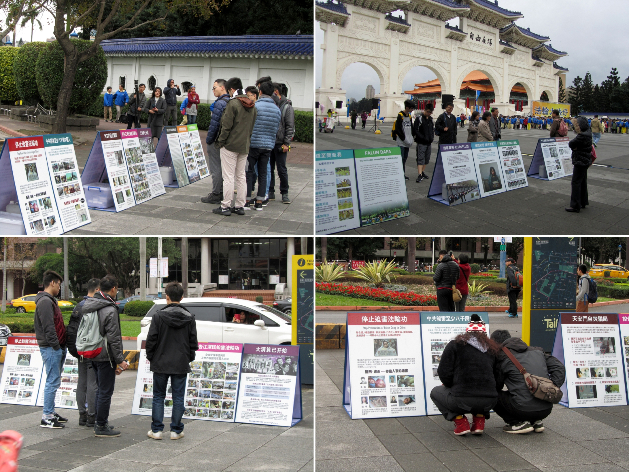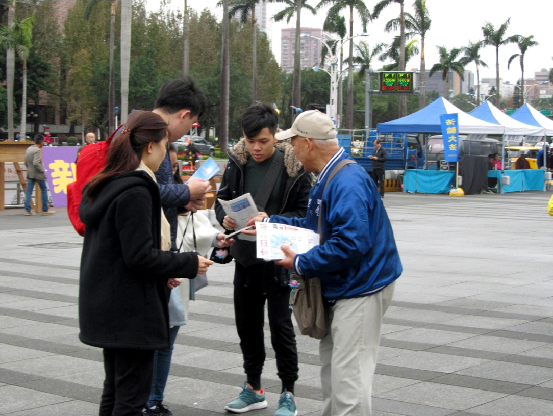 ![]() 图1-2:大台北地区法轮功学员于二零一七年一月十五日在“自由广场”集体大炼功、传播真相。 |
