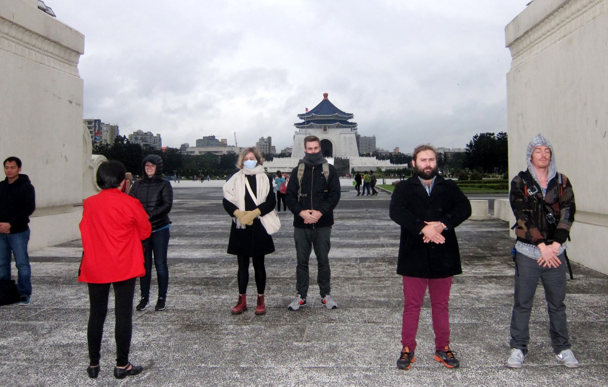 来自德国的二位男士高兴地接受建议:先按预定计划参观中正纪念堂,等待下午二时回到自由广场观看学员贺年以及大炼功的盛况。