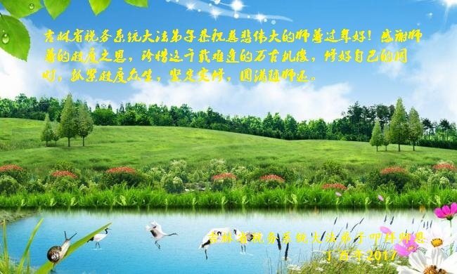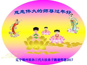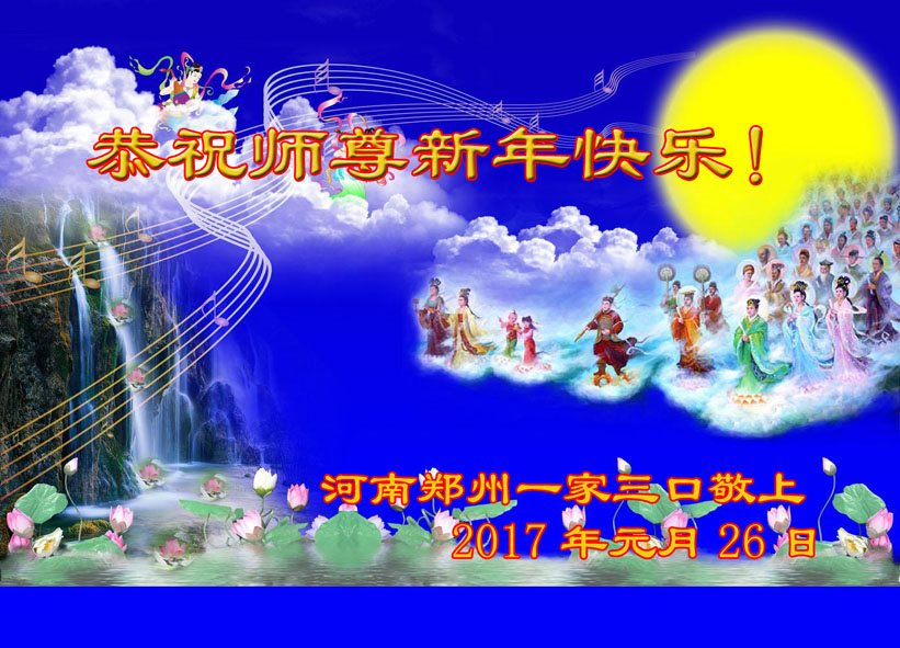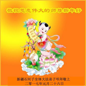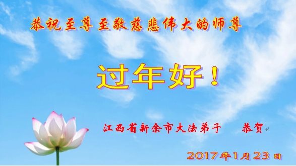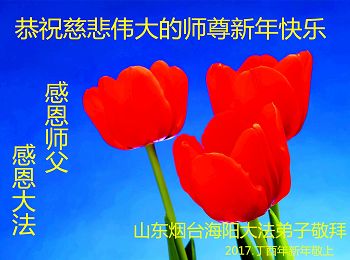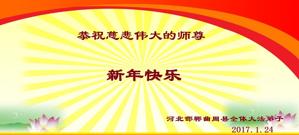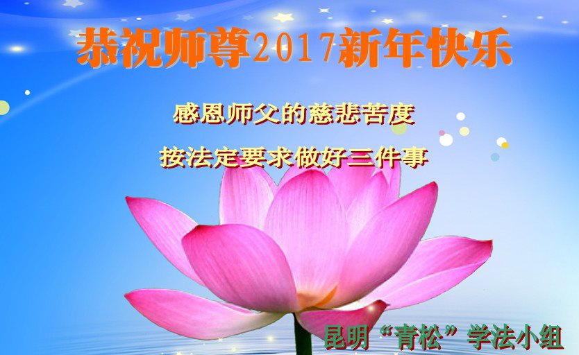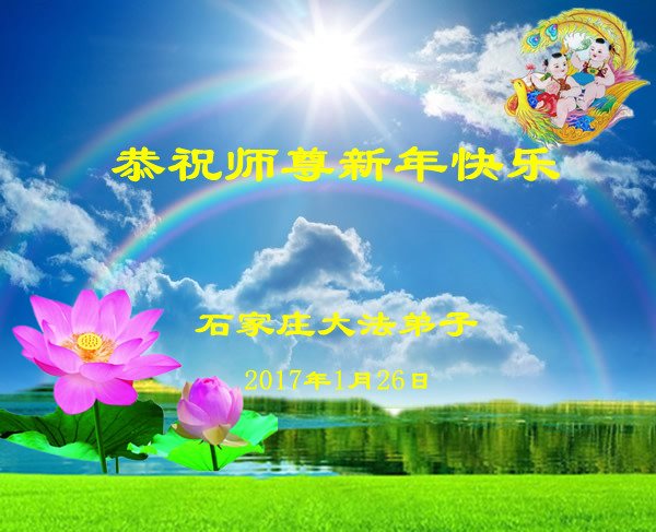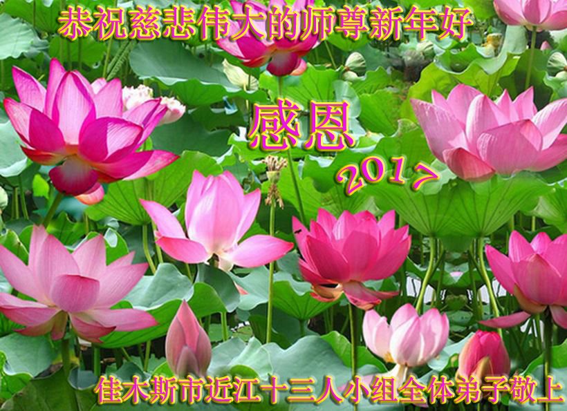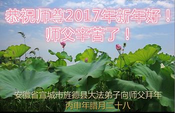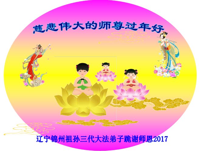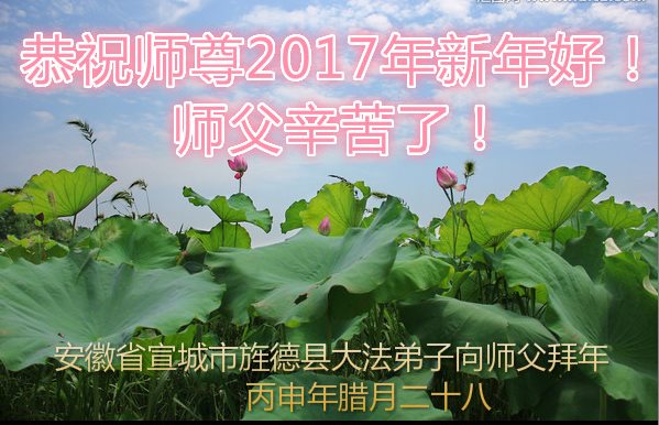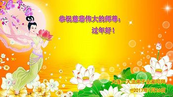 感恩师尊!师尊以无量的慈悲、无尽的承受换来了新的二零一七年。在新的一年里,弟子会牢记使命,精進实修,按照师尊对我们的要求做好三件事,兑现誓约。同时抓紧时间修好自己,做一个合格的弟子,跟师尊回家。弟子叩拜!