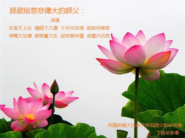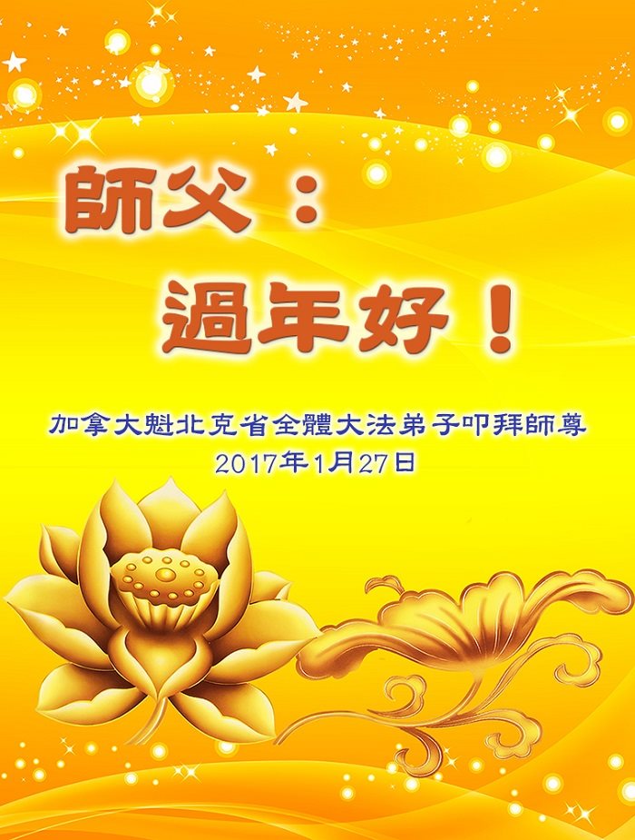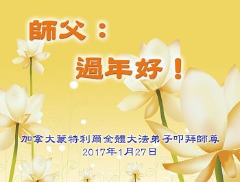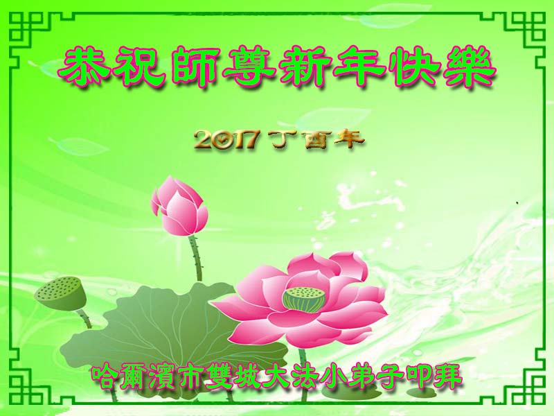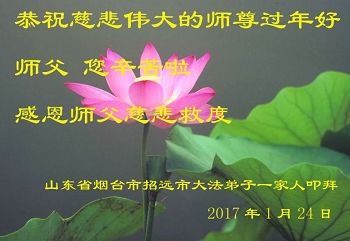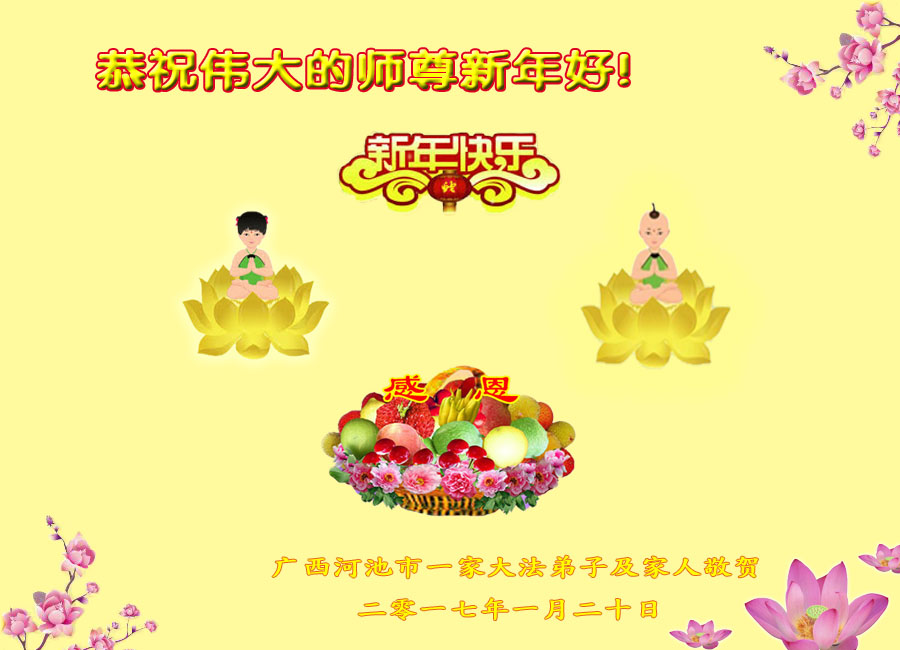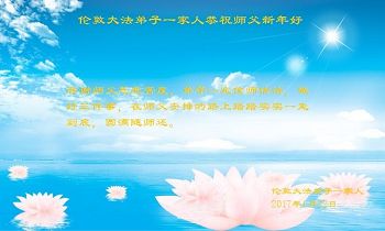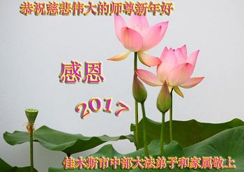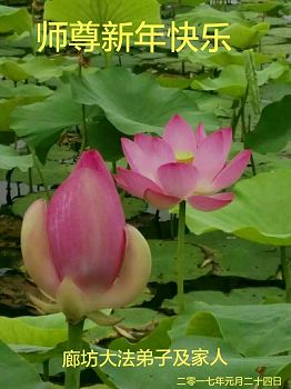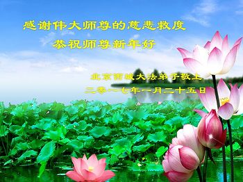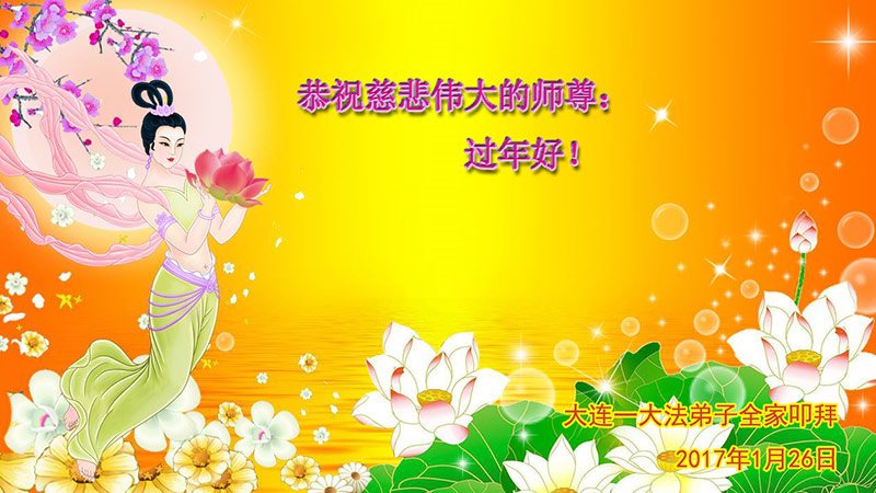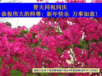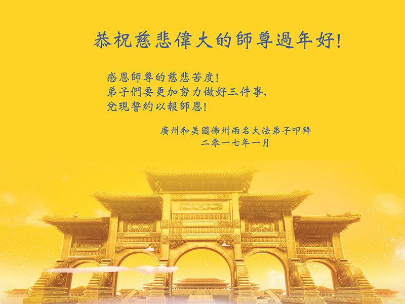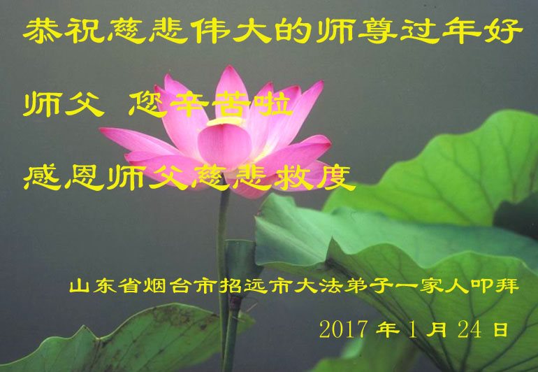 感恩师尊!师尊以无量的慈悲、无尽的承受换来了新的二零一七年。在新的一年里,弟子会牢记使命,精進实修,按照师尊对我们的要求做好三件事,兑现誓约。同时抓紧时间修好自己,做一个合格的弟子,跟师尊回家。弟子叩拜!