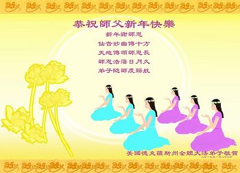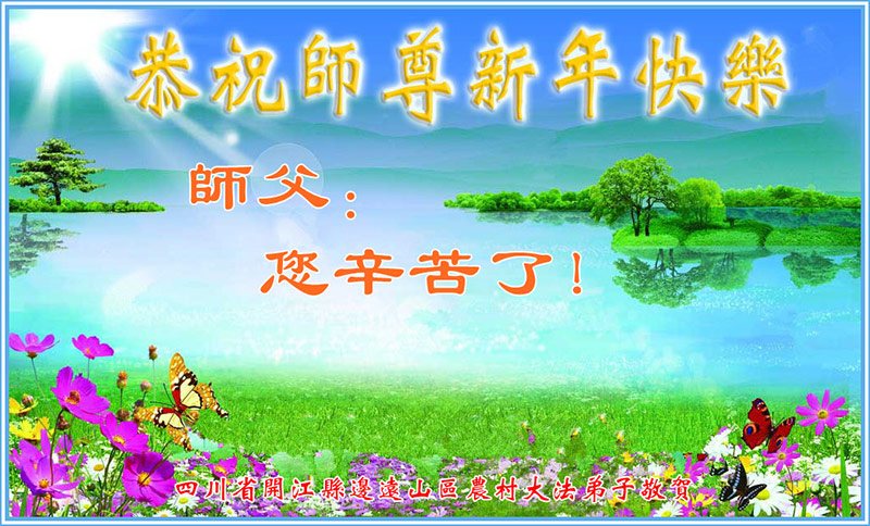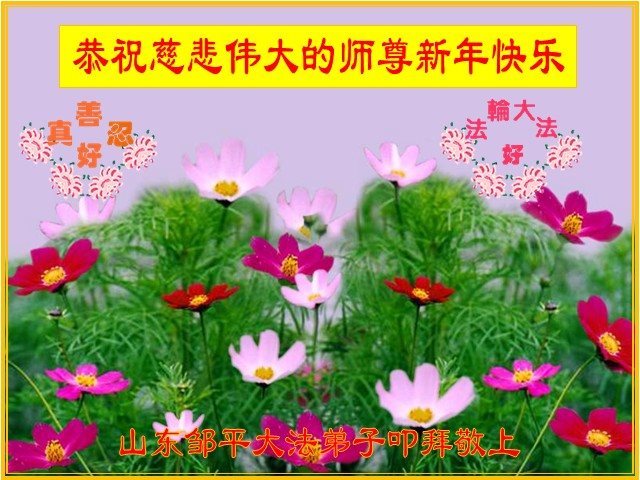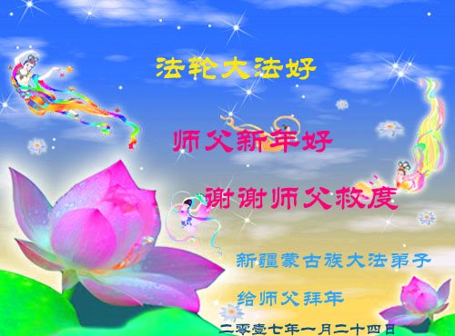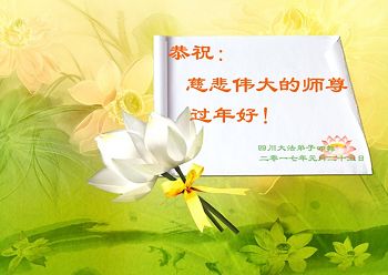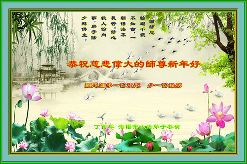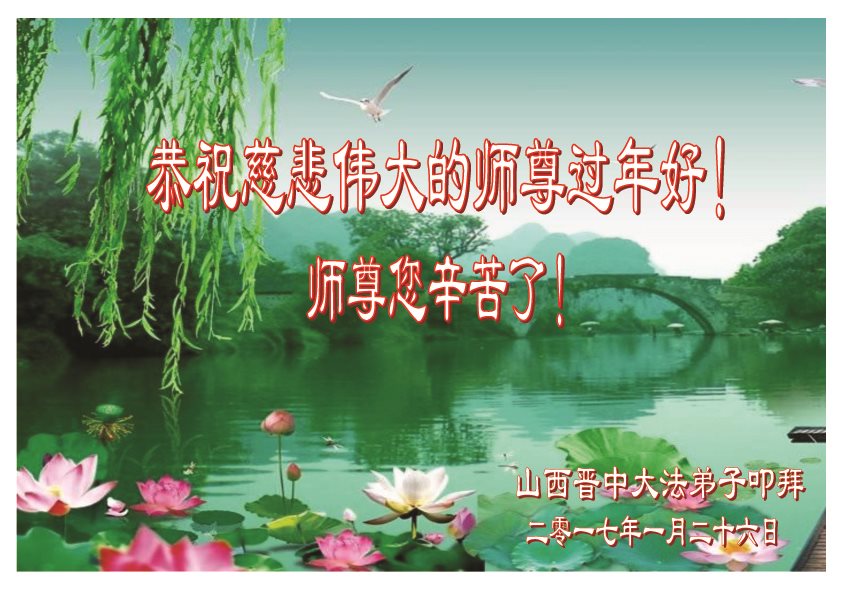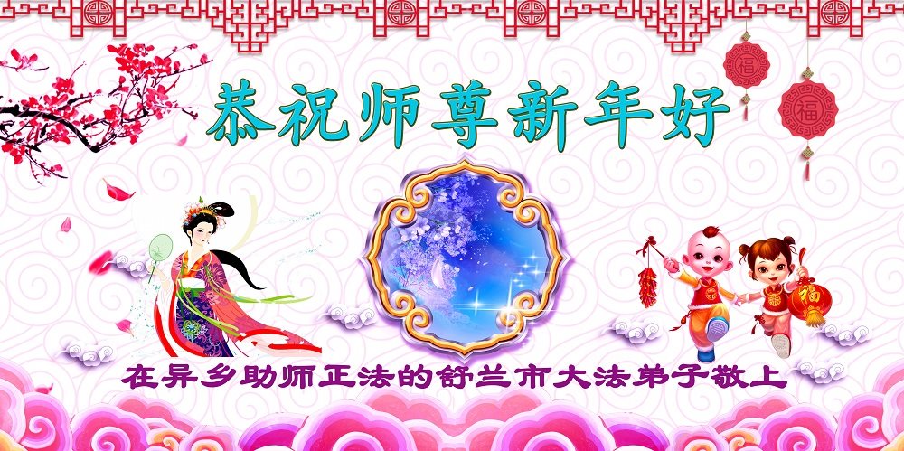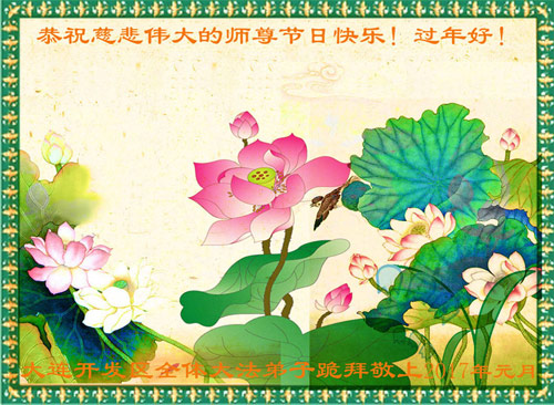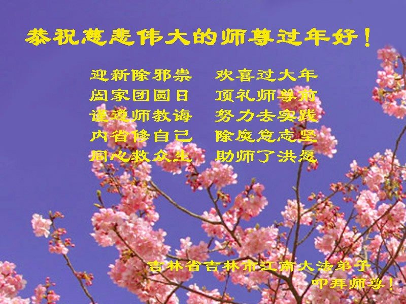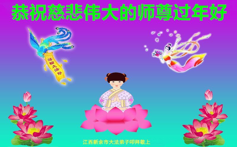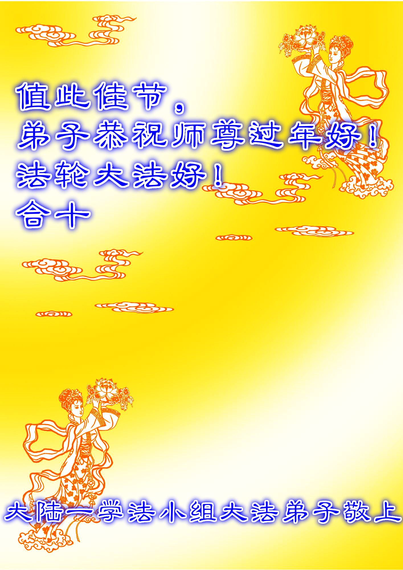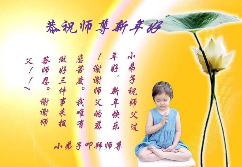 以下为来自中国大陆冀、晋、辽、吉、黑、苏、浙、皖、闽、赣、鲁、豫、鄂、湘、粤、川、贵、云、陕、甘、京、津、沪、渝、宁、新、藏、桂、蒙、青30个省、自治区、直辖市的大法弟子敬献师尊的新年贺词。