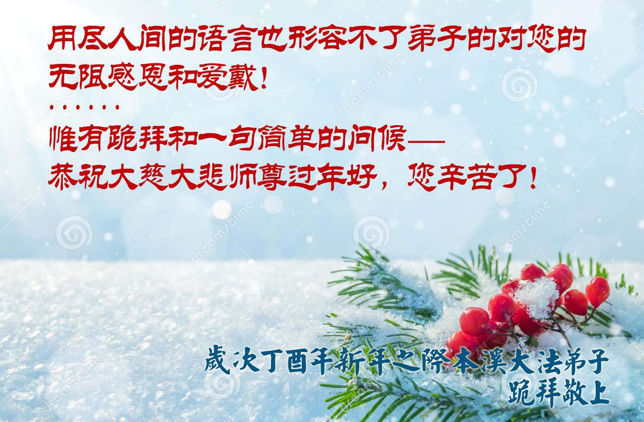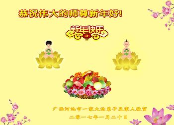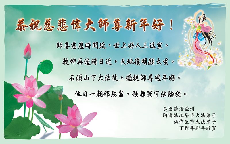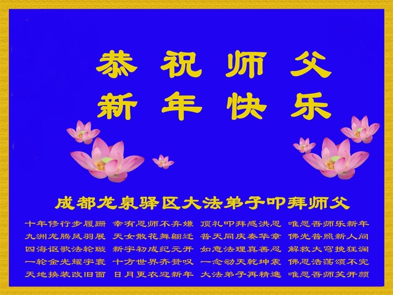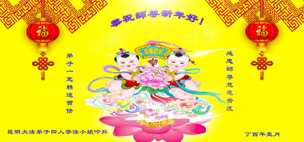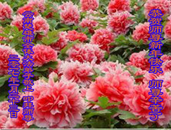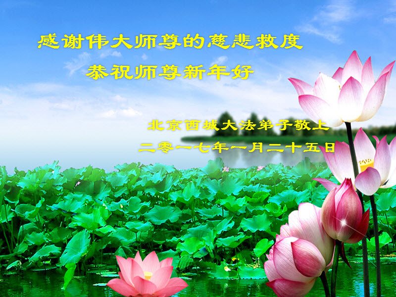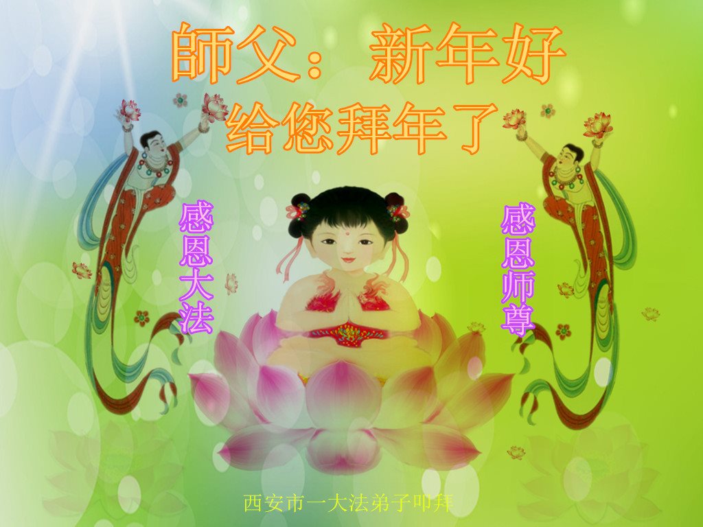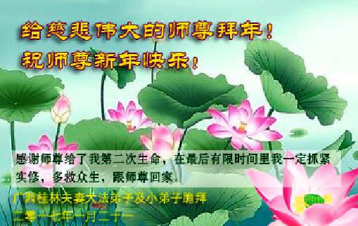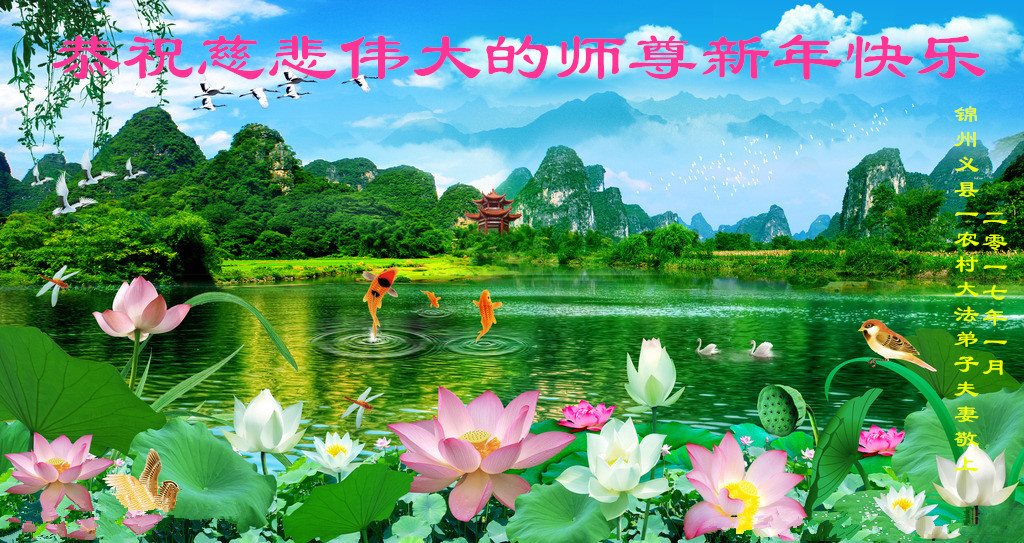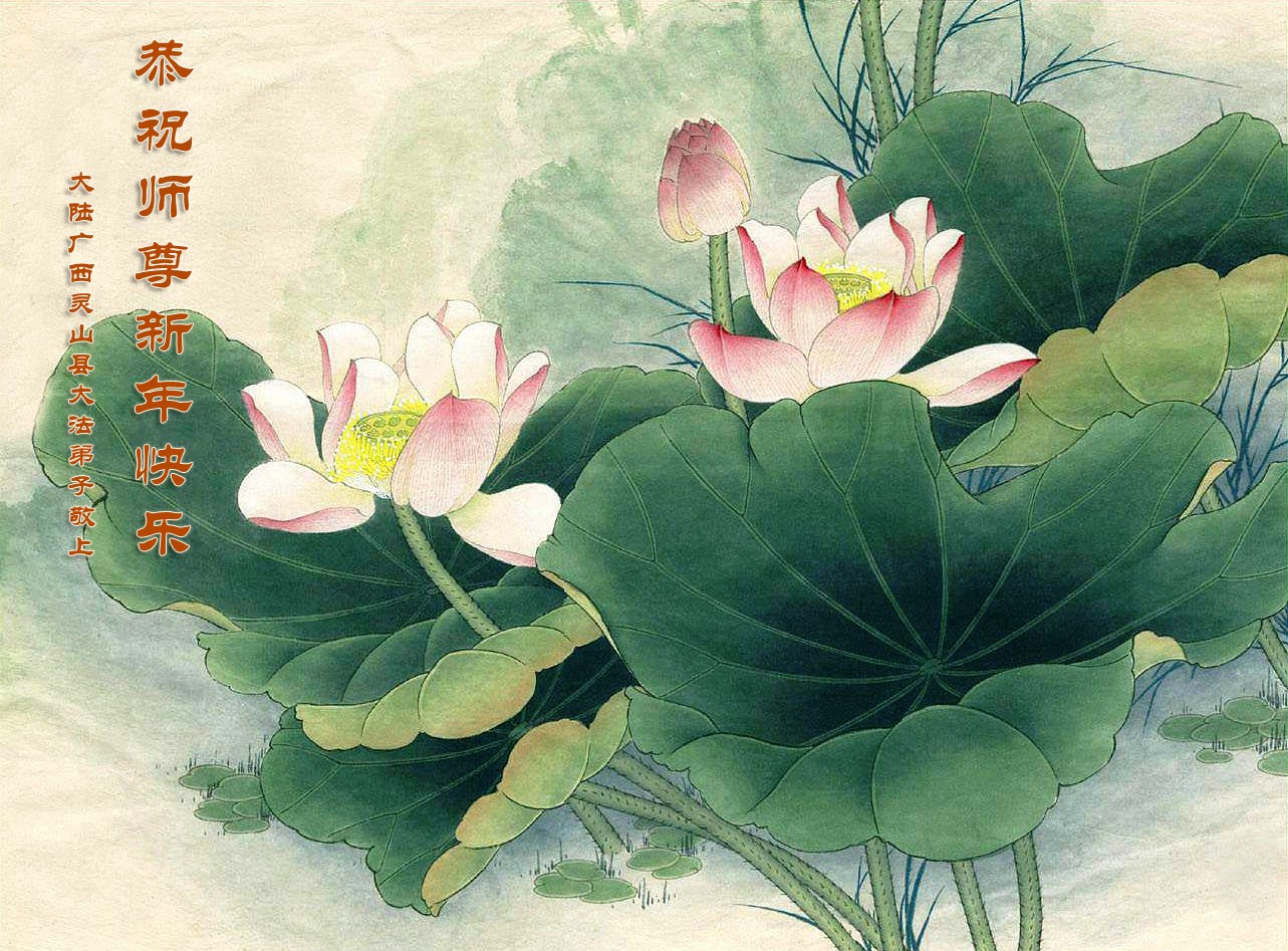 以下为来自中国大陆冀、晋、辽、吉、黑、苏、浙、皖、闽、赣、鲁、豫、鄂、湘、粤、川、贵、云、陕、甘、京、津、沪、渝、宁、新、藏、桂、蒙、青30个省、自治区、直辖市的大法弟子敬献师尊的新年贺词。