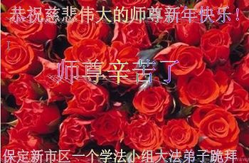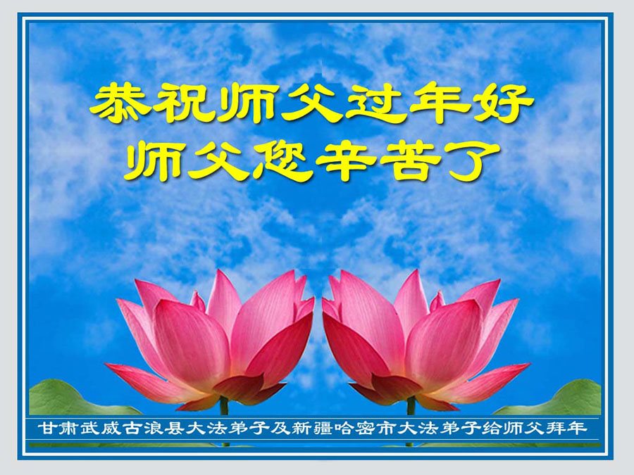 甘肃省酒泉市肃州区一大法弟子恭祝慈悲伟大的师尊新年快乐!师父辛苦了,弟子叩拜感恩师父的慈悲苦度。