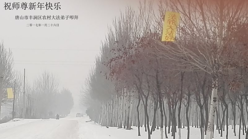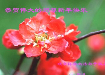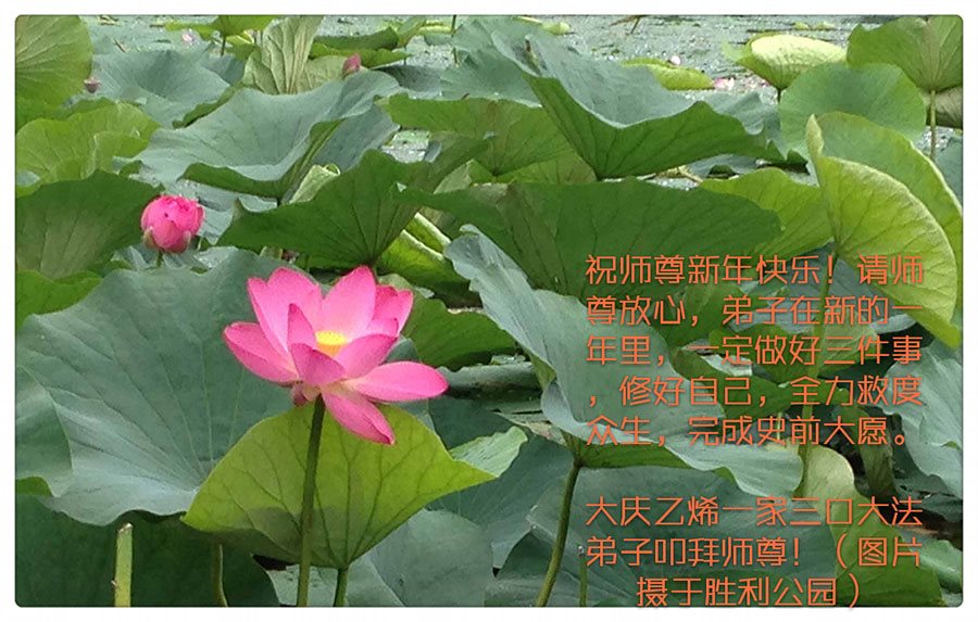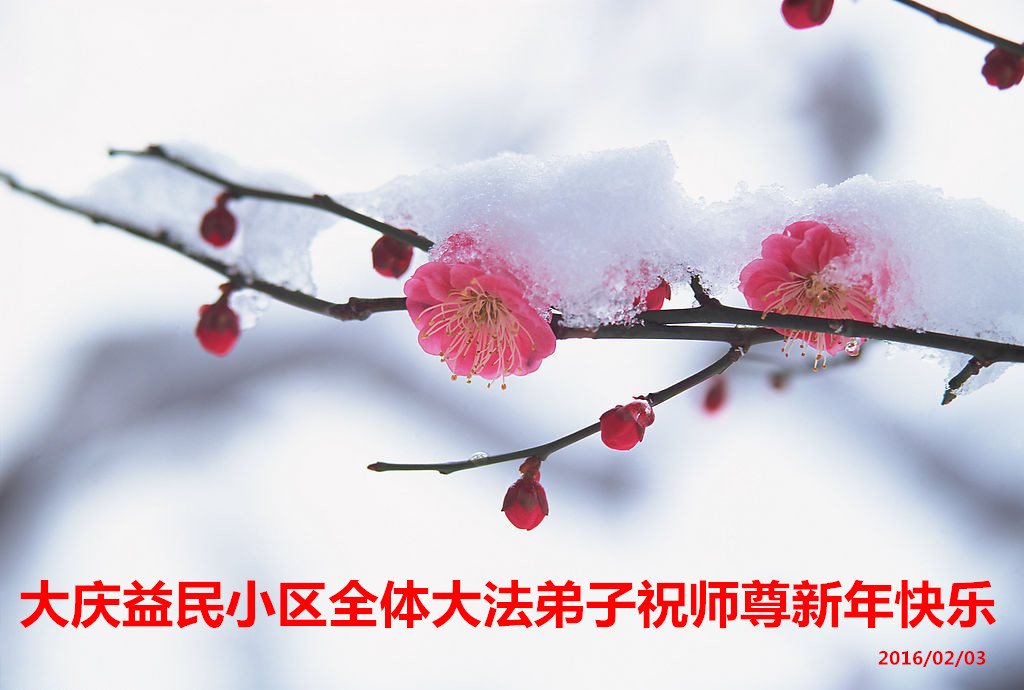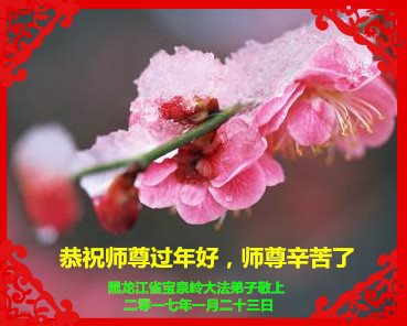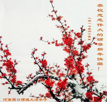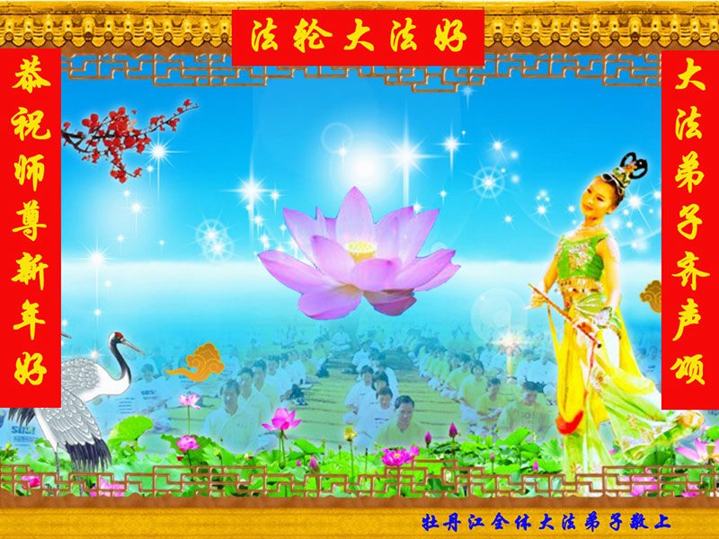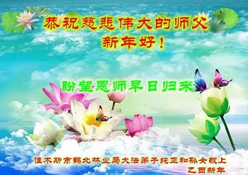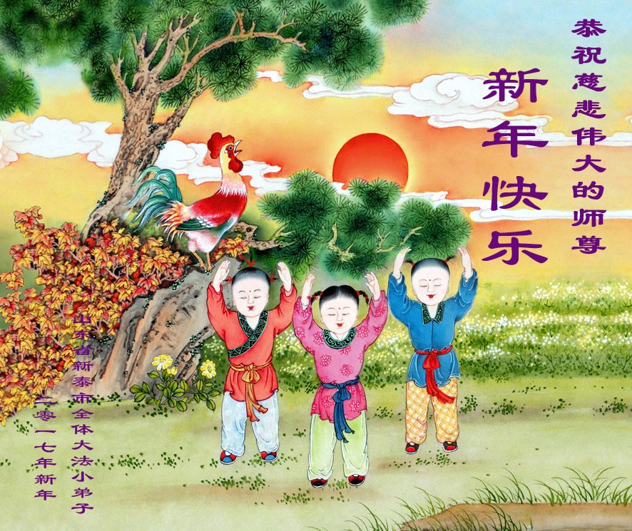 新年伊始,金鸡报晓。在新的一年里,我们一定奋起直追,弥补不足和过错;用心学法,对照大法无条件的向内找,修好自己;在宇宙的正邪大较量中用心发正念,助师正法,除尽邪恶;用心讲真相多救众生。做好师父要求的三件事。不负恩师厚望;不负众生所盼;不给将来留下太多的遗憾或后悔。待到正法结束那一天,圆满随师返家园。