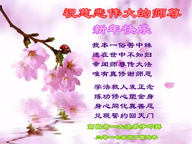 靖江全体大法弟子向师尊拜年!感恩师尊慈悲苦度!在新的一年里,唯有精進再精進,报答师恩。