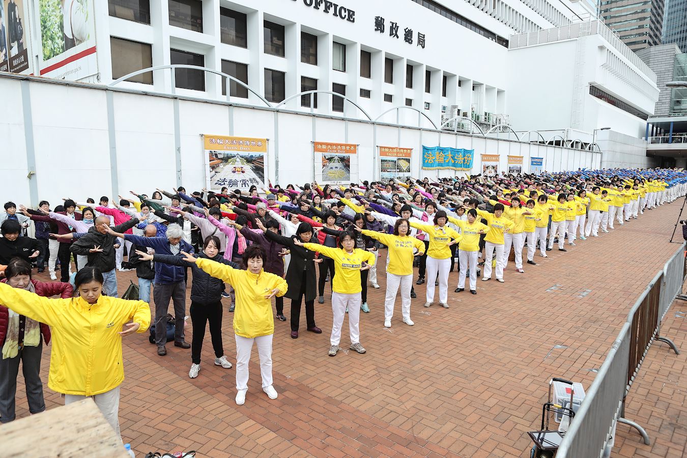 ![]() 图3:法轮功学员集体大炼功。 |