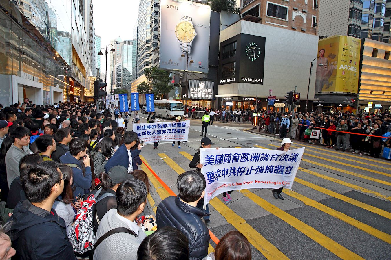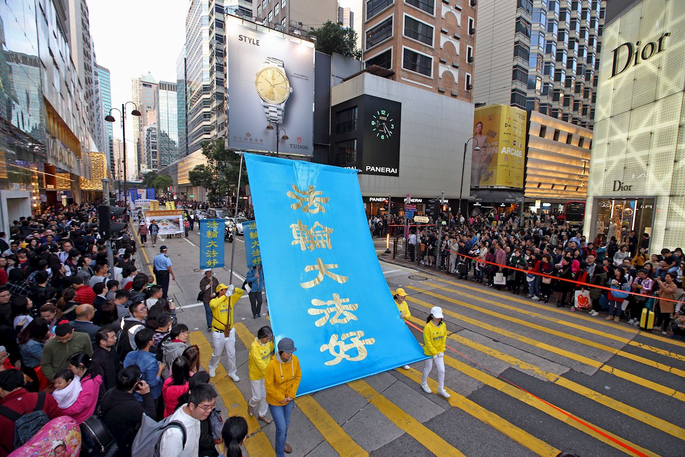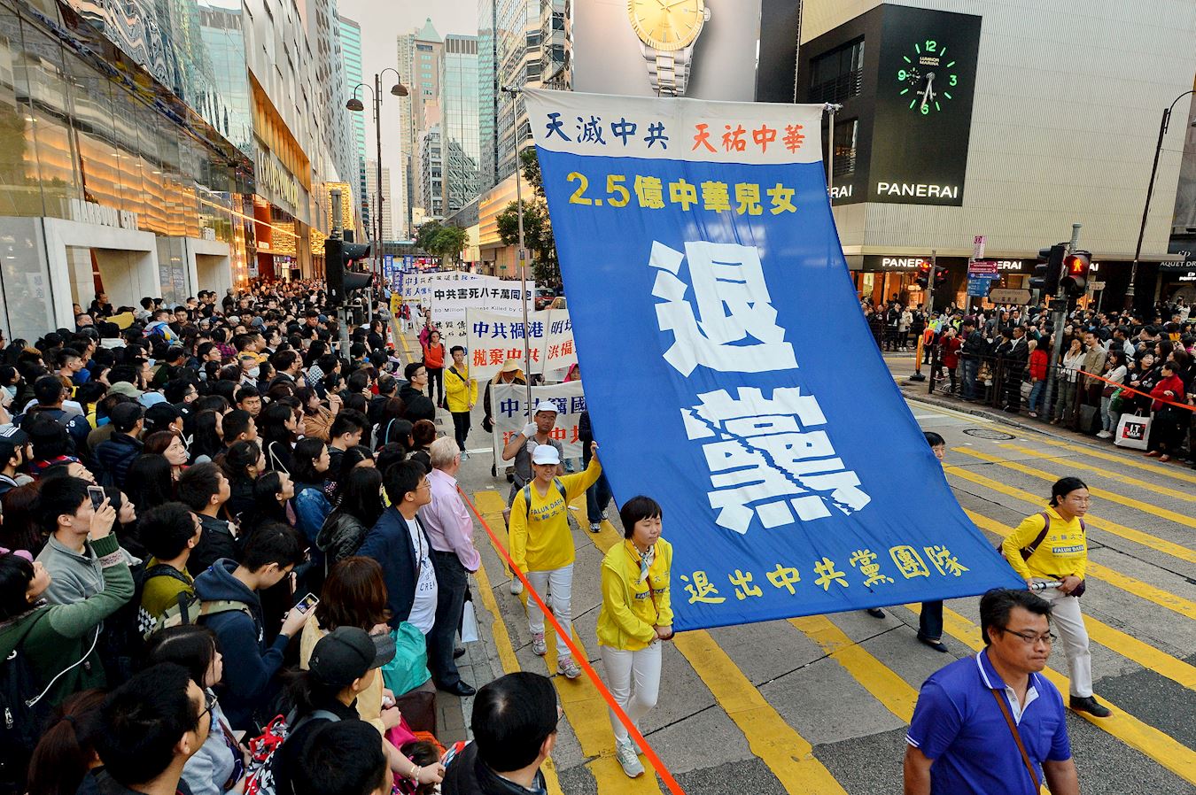 法轮功学员透过游行展示法轮大法的美好,揭露中共的迫害,希望更多人了解真相,彰显正义良知,走向光明的未来。游行队伍分为“明真相 得吉祥”、“和平理性反迫害”、“扬正气 擒恶狼”、“天灭中共 三:退.是福”、“法办元凶 结束祸港”、“法轮大法好”等六大阵列,途经九龙多个闹市,吸引许多中外民众驻足观看。不少大陆游客表示深感震撼,支持法轮功真善忍的精神。