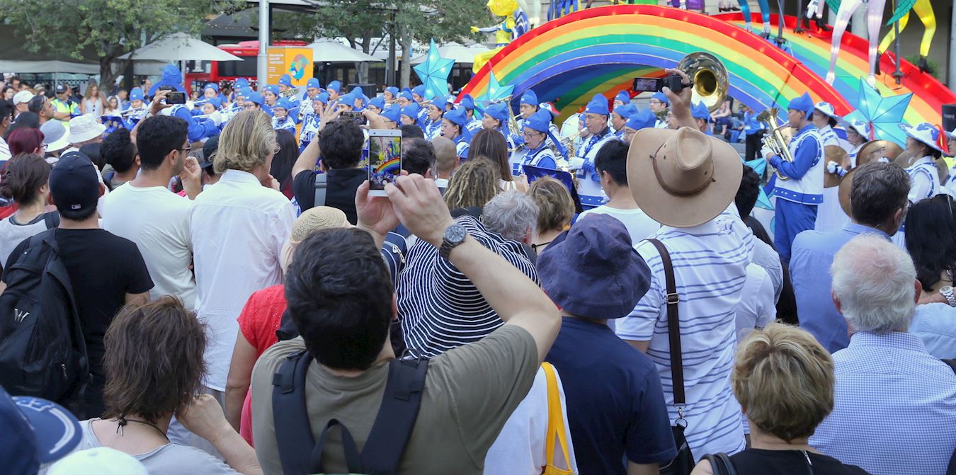 ![]() 图2:观众挤得水泄不通,观看天国乐团在悉尼市中国新年庆祝会上演奏 |