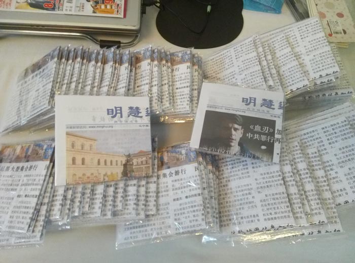 我是这样发放的,比如这周有《明慧周报》大陆版和《三:退.与平安》,《纵观天下》,还有我们省的《周报》。