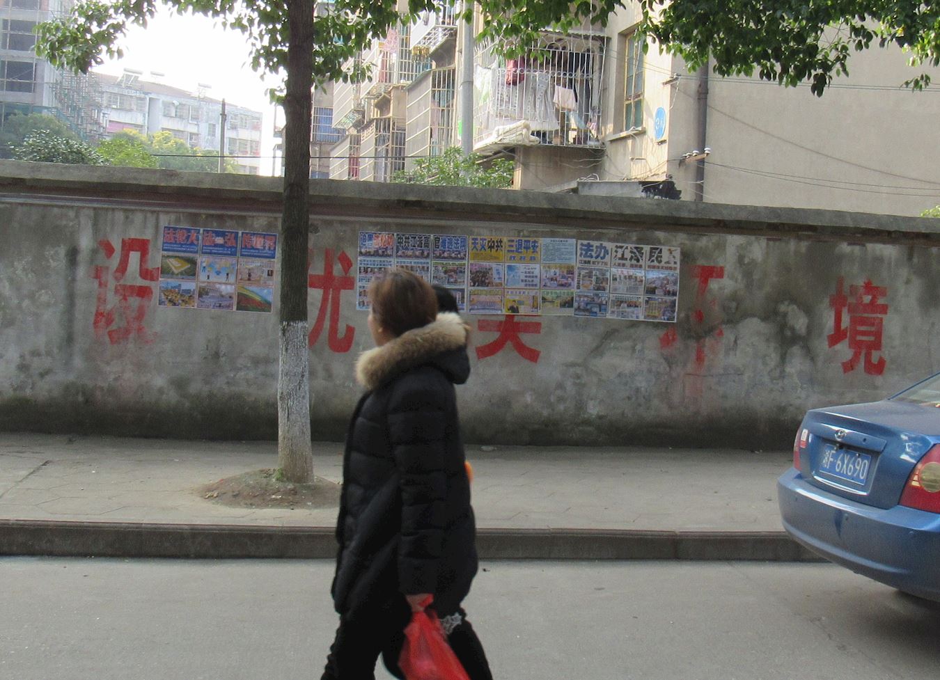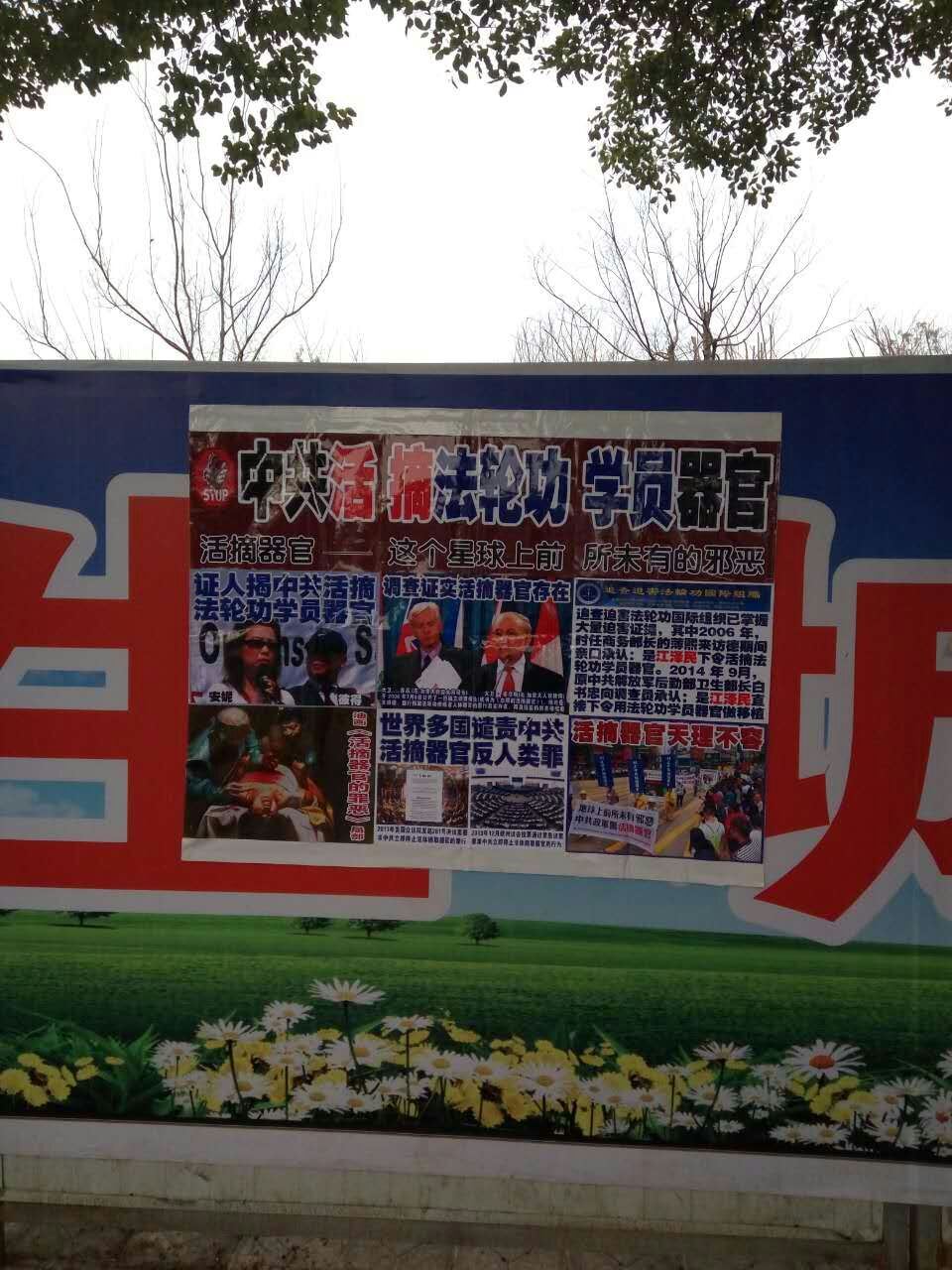 大陆各地树挂、条幅、海报传递新年祝福和真相
