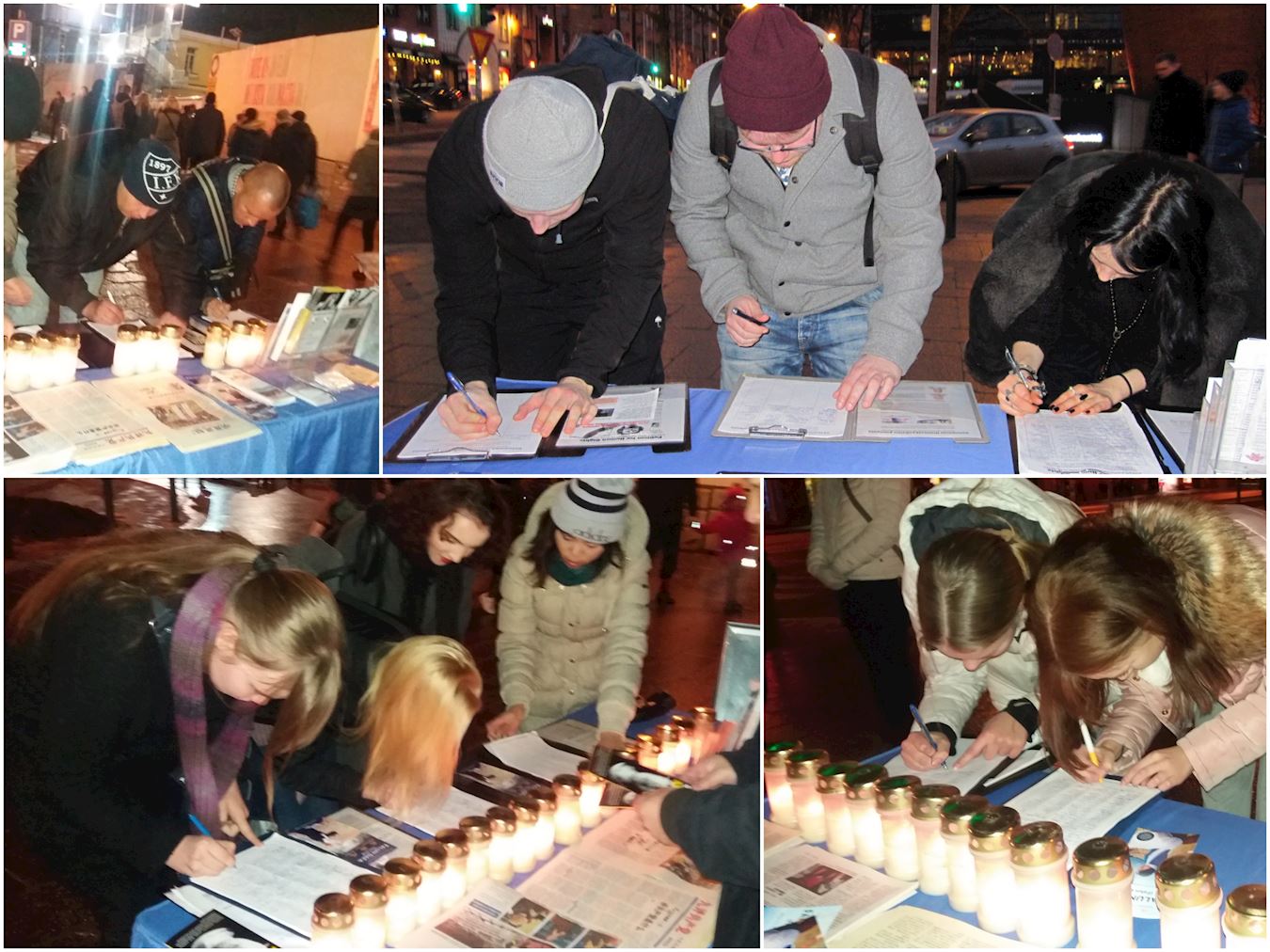 二十七日下午和晚上,法轮功学员们举办了停止活摘器官的反迫害征签和烛光悼念活动。