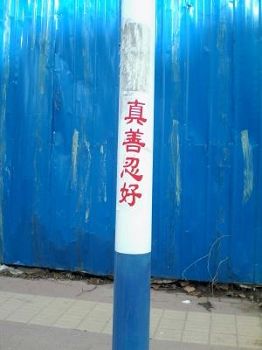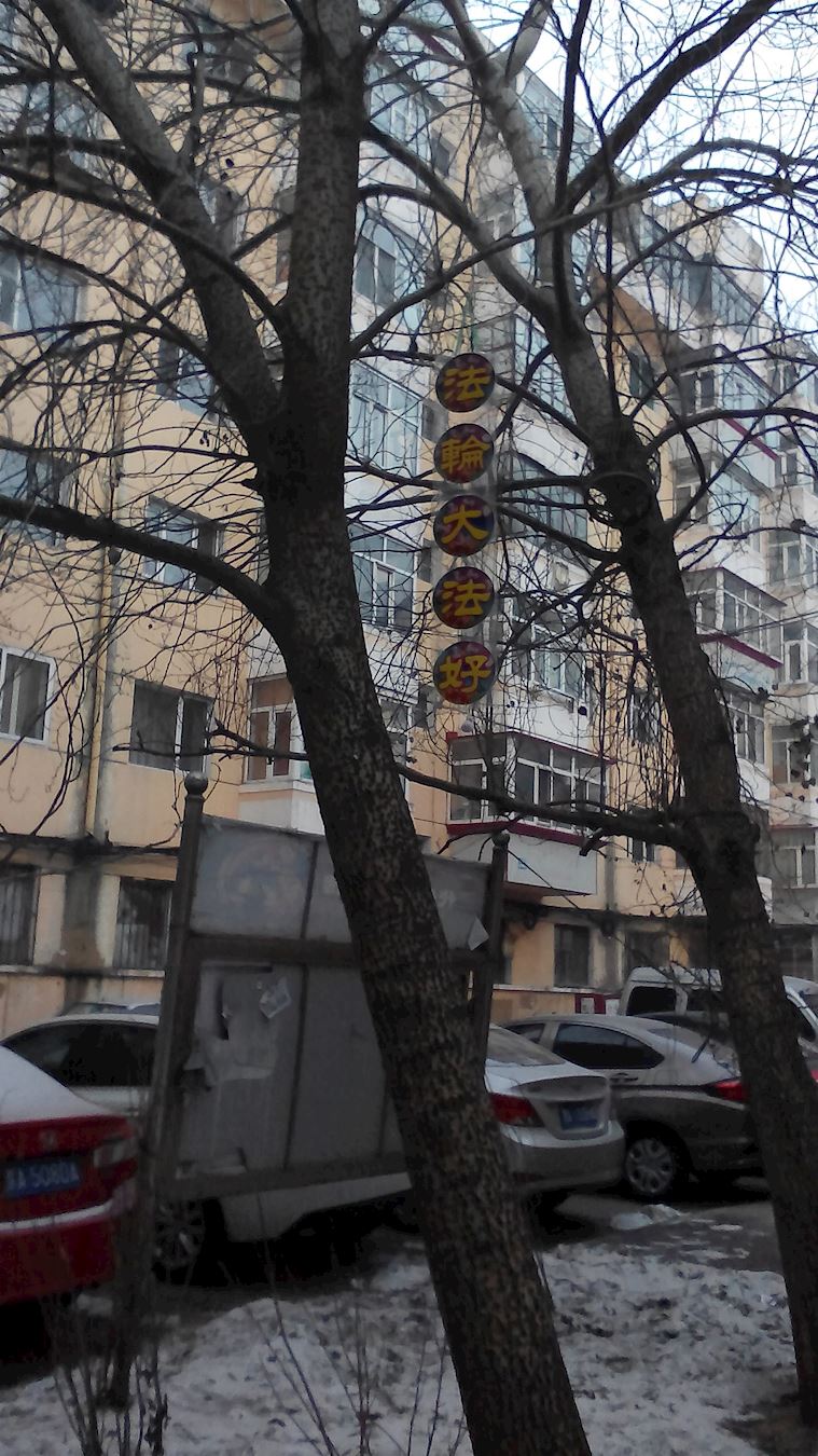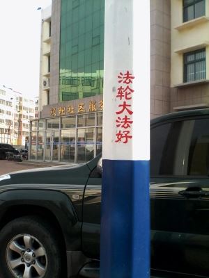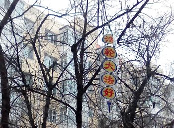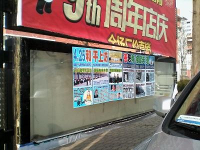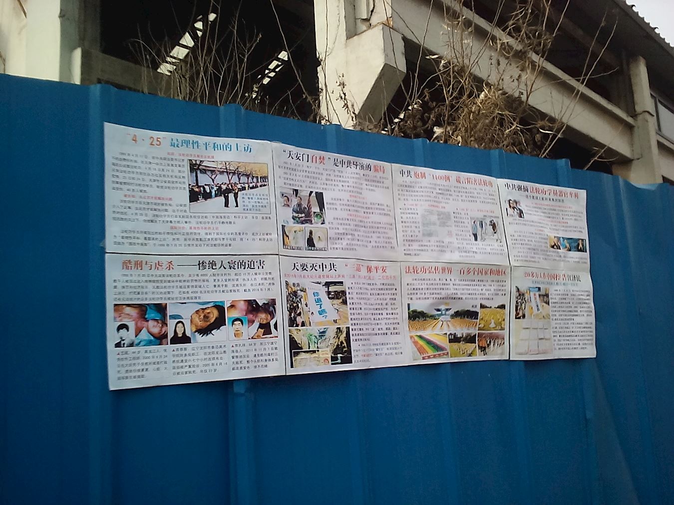 • 哈尔滨市街头出现的法轮功真相展板和不干胶