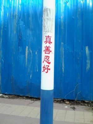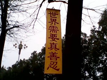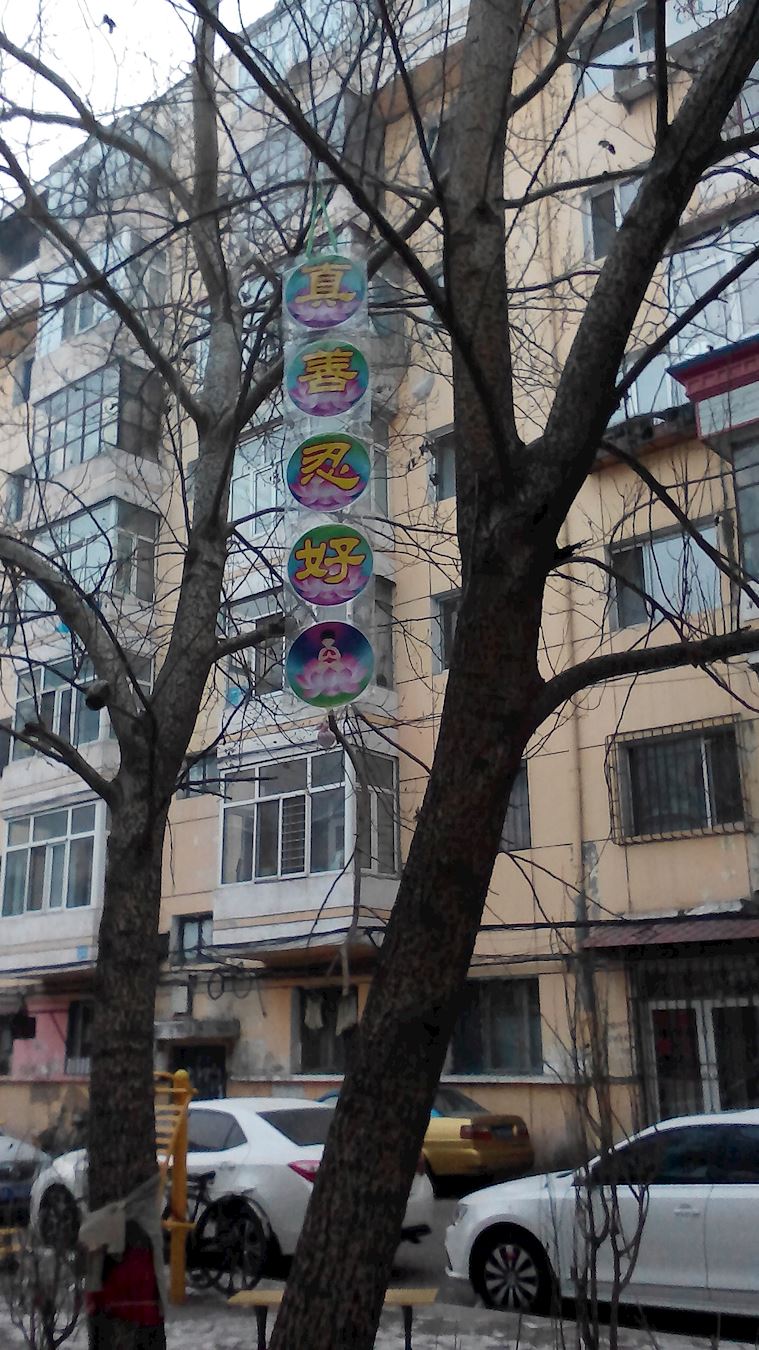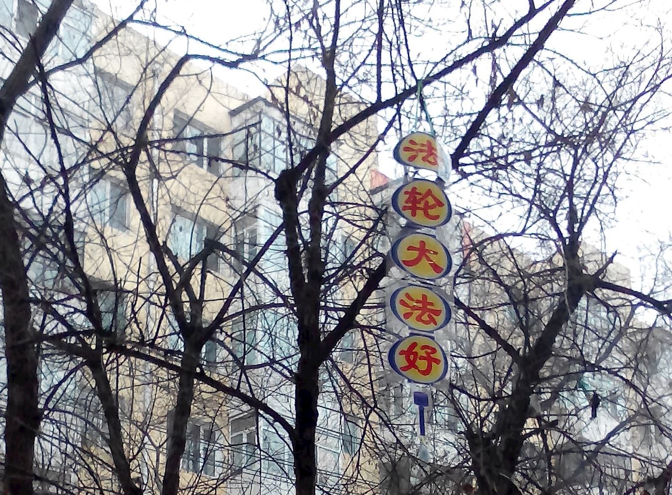 辞旧迎新,2016年岁末,陕西某市公园、街道出现“法轮大法好”、“真、善、忍好”、“停止迫害法轮功”等条幅,展示2017年新年伊始的新气象。