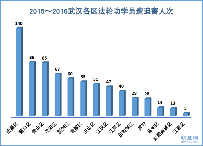 ![]() 2015~2016武汉各区法轮功学员遭迫害人次 |