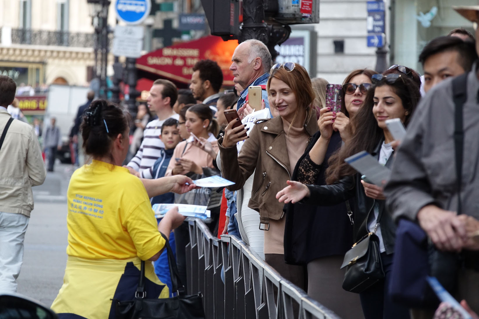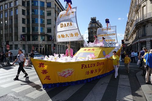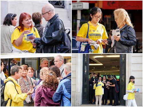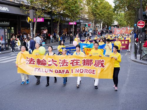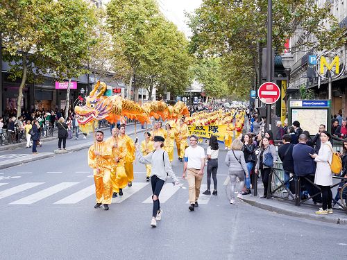 时值周末,游行所经之地人流川流不息,沿途民众有些已经听说过法轮功及中共迫害法轮功的真相,还是有很多人头一次听闻法轮功和中共对法轮功的迫害,尤其是中共活摘法轮功学员器官的罪行,更是令法国民众和来自各国的游客感到震惊,人们纷纷表示声援法轮功学员的反迫害活动。法轮功学员的游行队伍让连续经历了数次恐怖袭击的巴黎民众感受到平和与放松,人们看到了不同年龄、不同国度、不同肤色的法轮功学员展现出法轮功的美好,露出了高兴的神情。