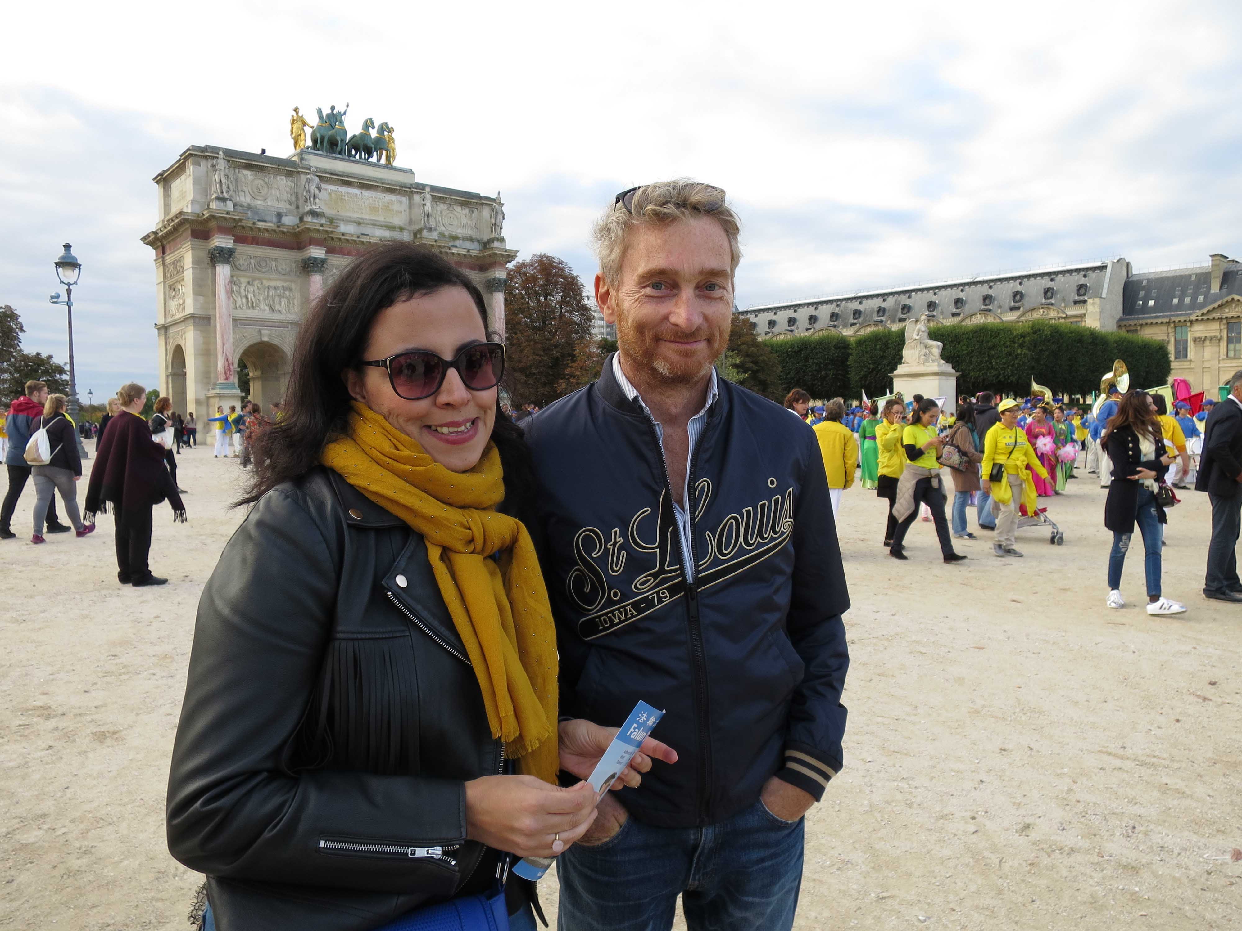 Ikrame-et-daniel-Keitzel是公司项目负责人,她和先生被法轮功学员游行队伍的丰富色彩所吸引。她认为:“这个功法只能给人带来好处,所以我不明白为么会有人想迫害他。”她表示:“在动荡的时代里,这样的游行给巴黎重新带来祥和快乐。”她可以看出,“修炼的人们一定很喜欢这个功法。”