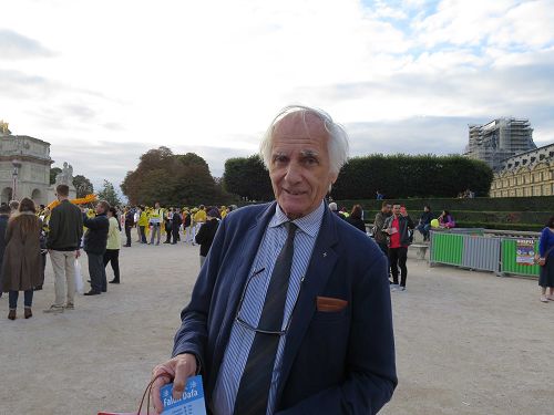 退休房地产商Claude-Ross-de-Miollis先生在卢浮宫前看到法轮功学员的游行,很开心,“很好看。他们来卢浮宫真好,因为这里有很多游客和很多中国大陆游客。他们看了一定很震惊。人一定要能表达自己,没有权力禁止言论。”