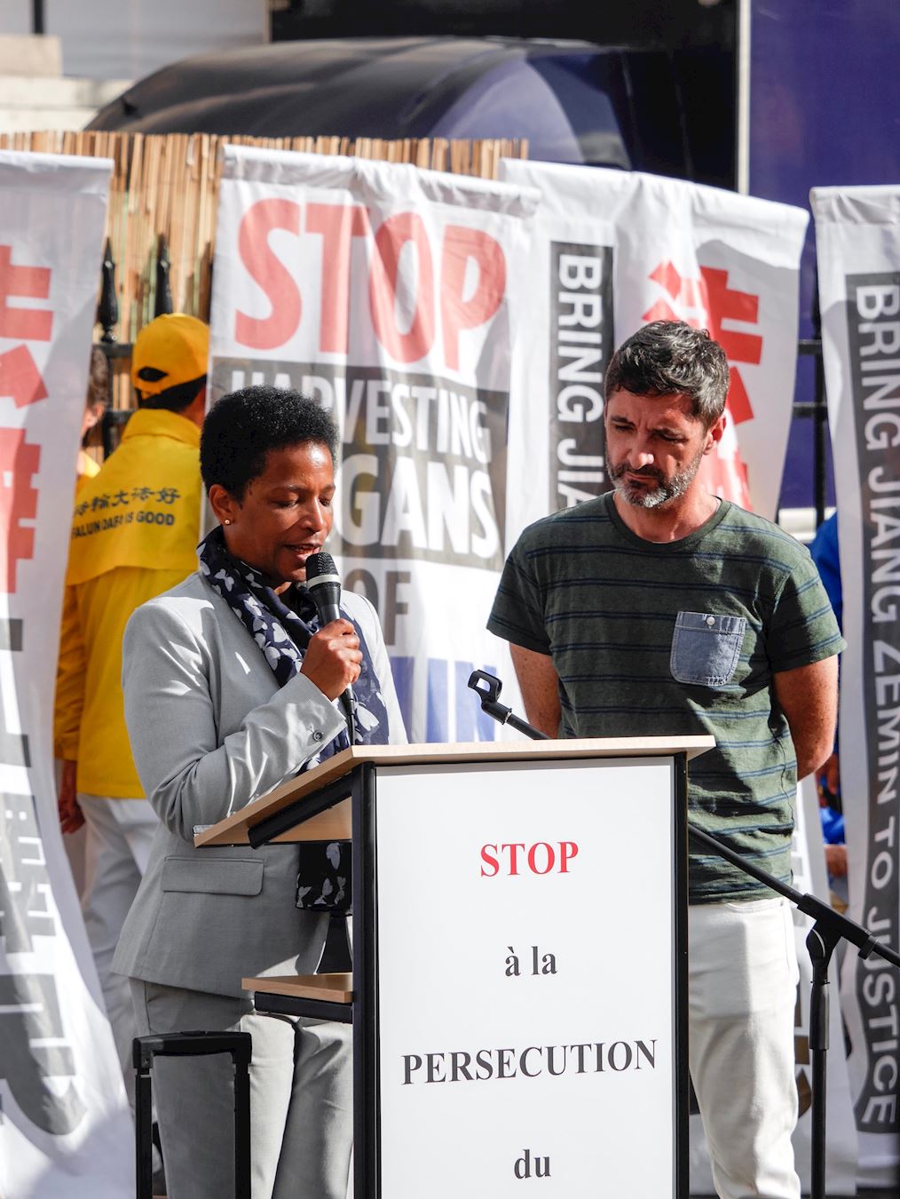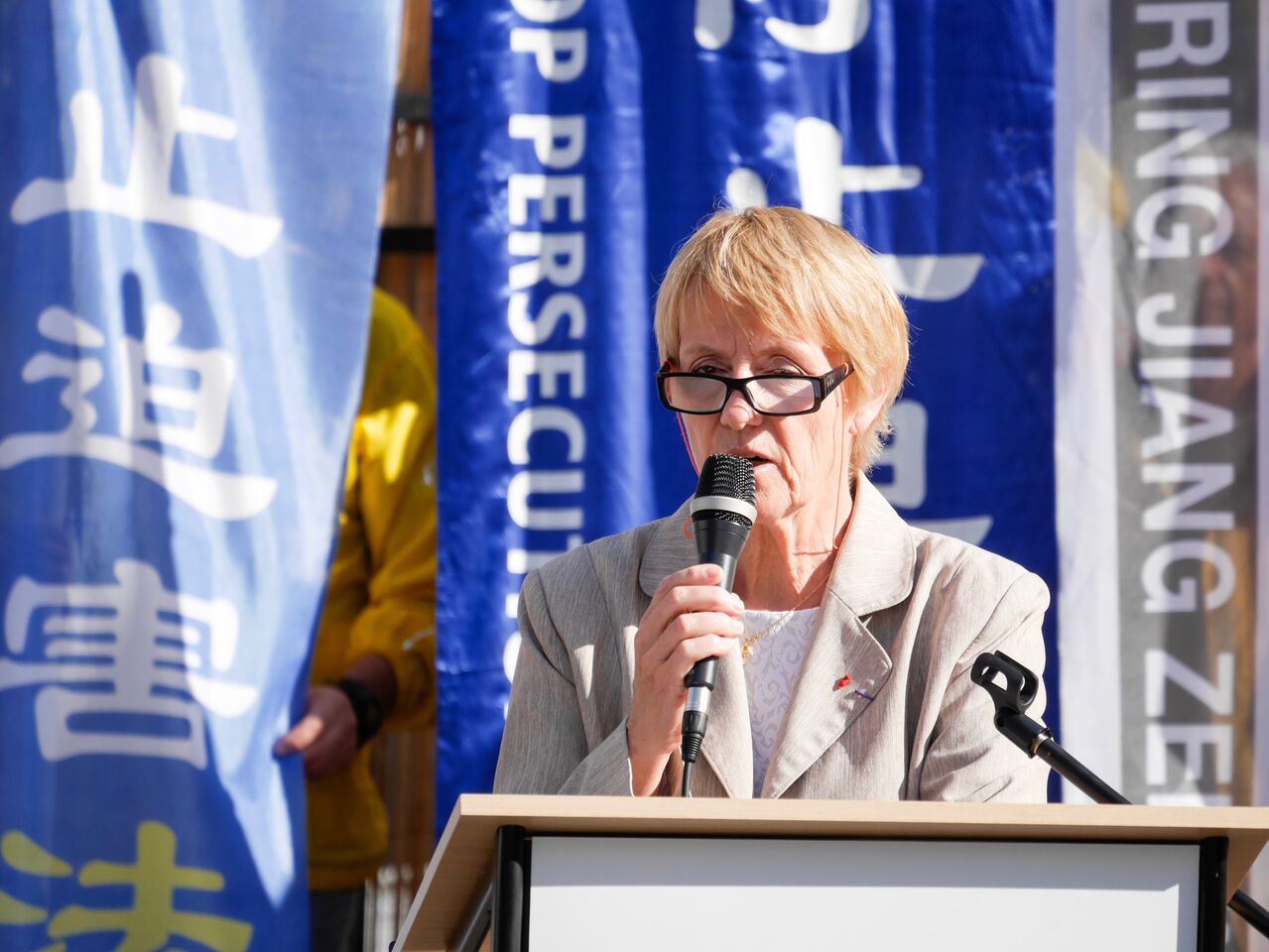 前法国部长弗朗索瓦兹·奥斯塔里耶(Françoise Hostalier)女士前来参加集会,并在会上发表了演讲,支持法轮功学员的反迫害行动,呼吁中共当局停止迫害。法国杜博区(Doubs)议员艾里克·阿珞赛(Éric Alauzet)先生和汝拉区议员让-马利·赛尔密耶(Jean-Marie SERMIER)先生为集会活动发来了支持信,同时呼吁法国政府坚持遵守欧盟决议案,谴责中共暴行。