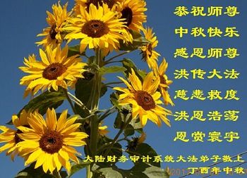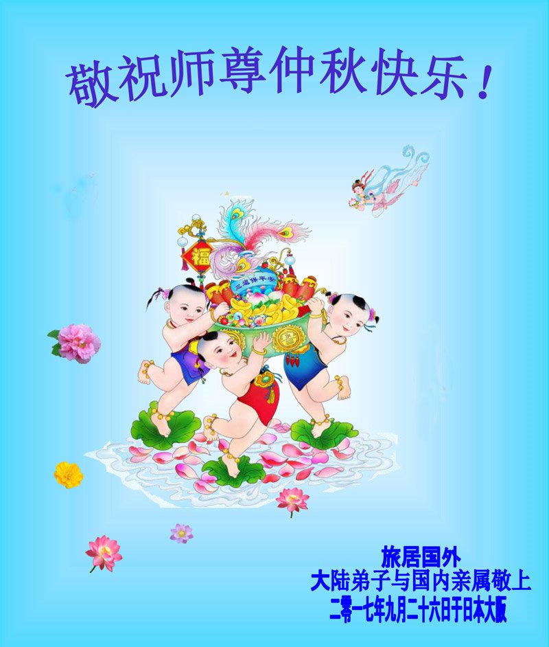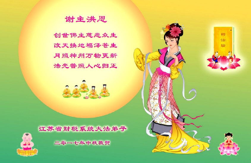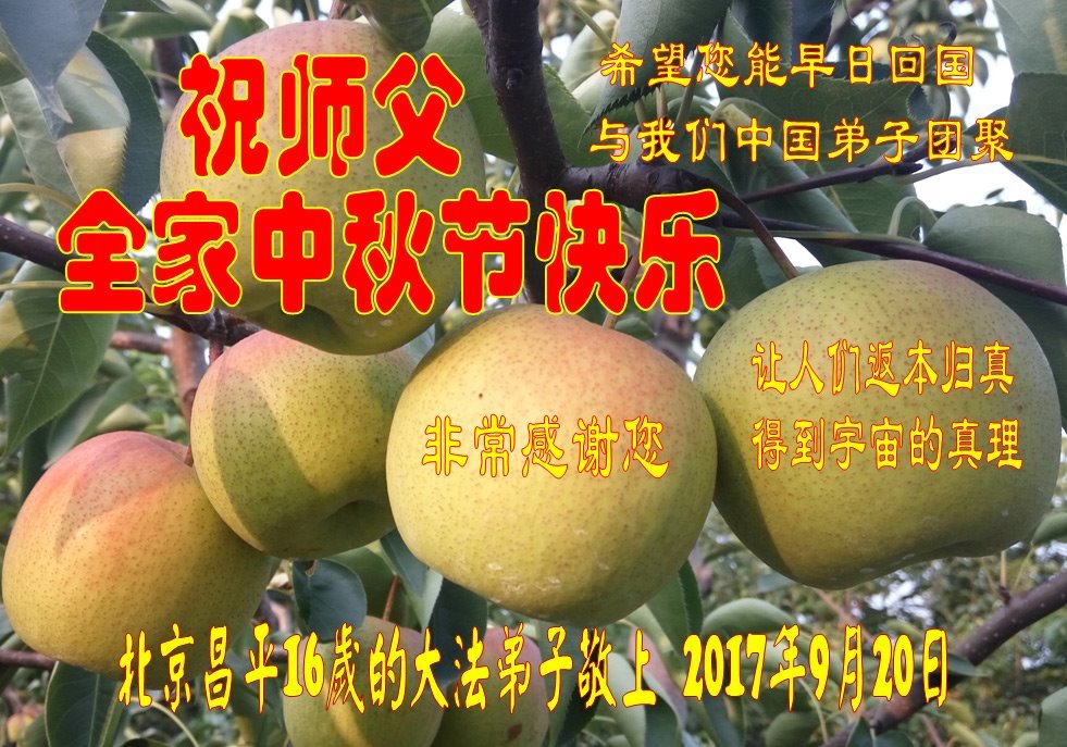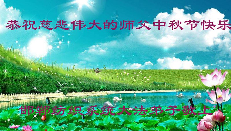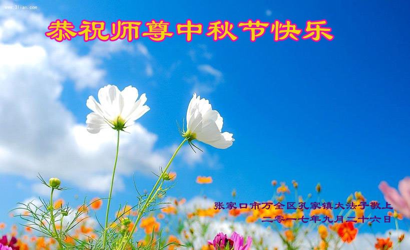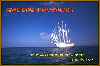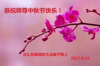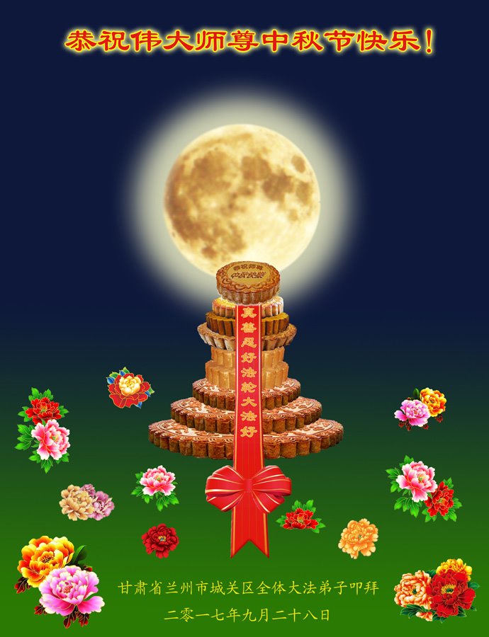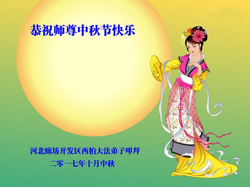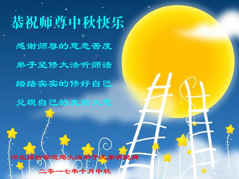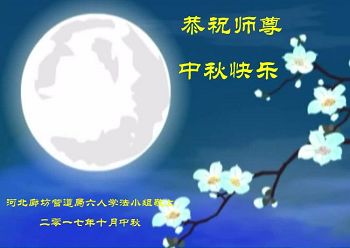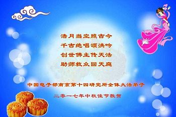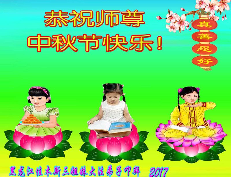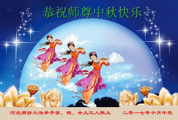 【明慧网二零一七年十月一日】浩月当空照古今,千古绝唱颂师恩!──来自中国大陆各行业,包括银行、财税、司法、航空航天、教育、各大油田、卫星测控、建设、铁路、电子研究、审计、卫生、纺织、电力、医疗、文艺、音乐、商业、外贸、农林、畜牧、水利、出版发行、邮政、矿产、石化、交通、供销、保险、军工、行政等系统的大法弟子遥祝师尊中秋快乐!