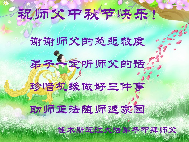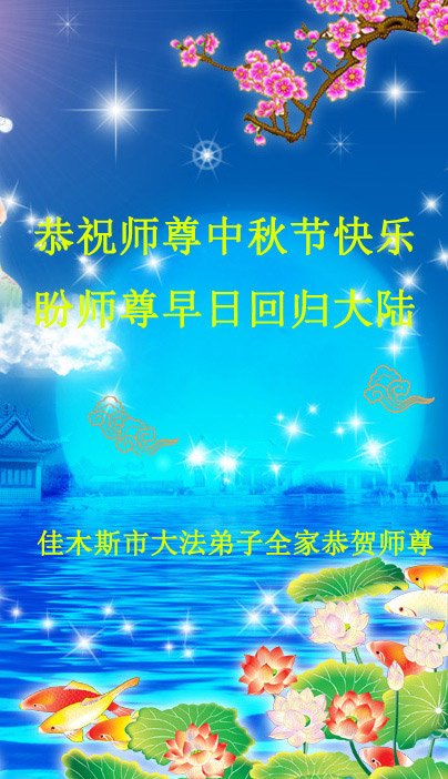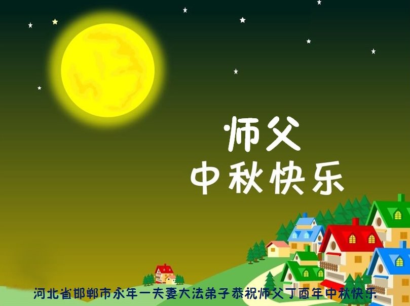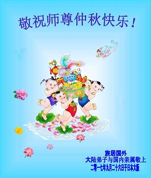 祝慈悲伟大的师父中秋节快乐!法轮大法好,真善忍好!盼望师父早回中国,我们想念您!