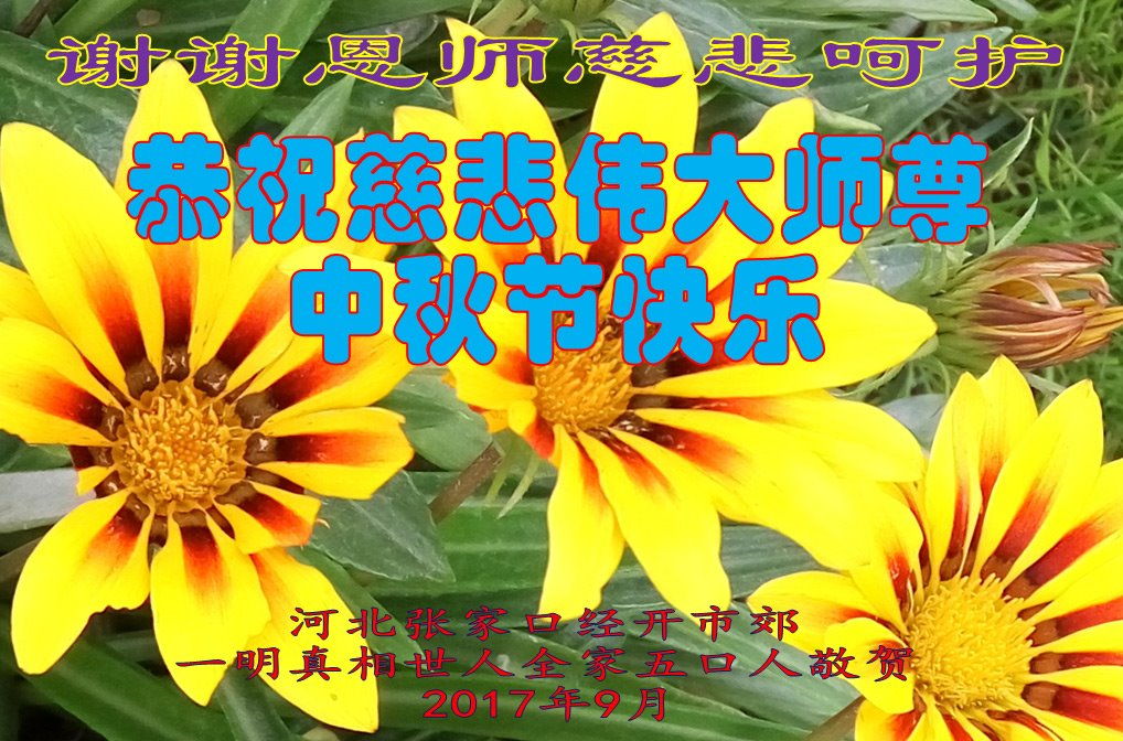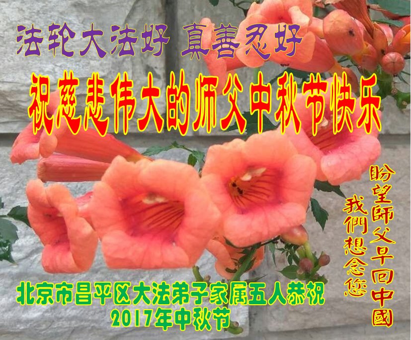 北京市昌平区大法弟子家属五人祝慈悲伟大的师父中秋节快乐!