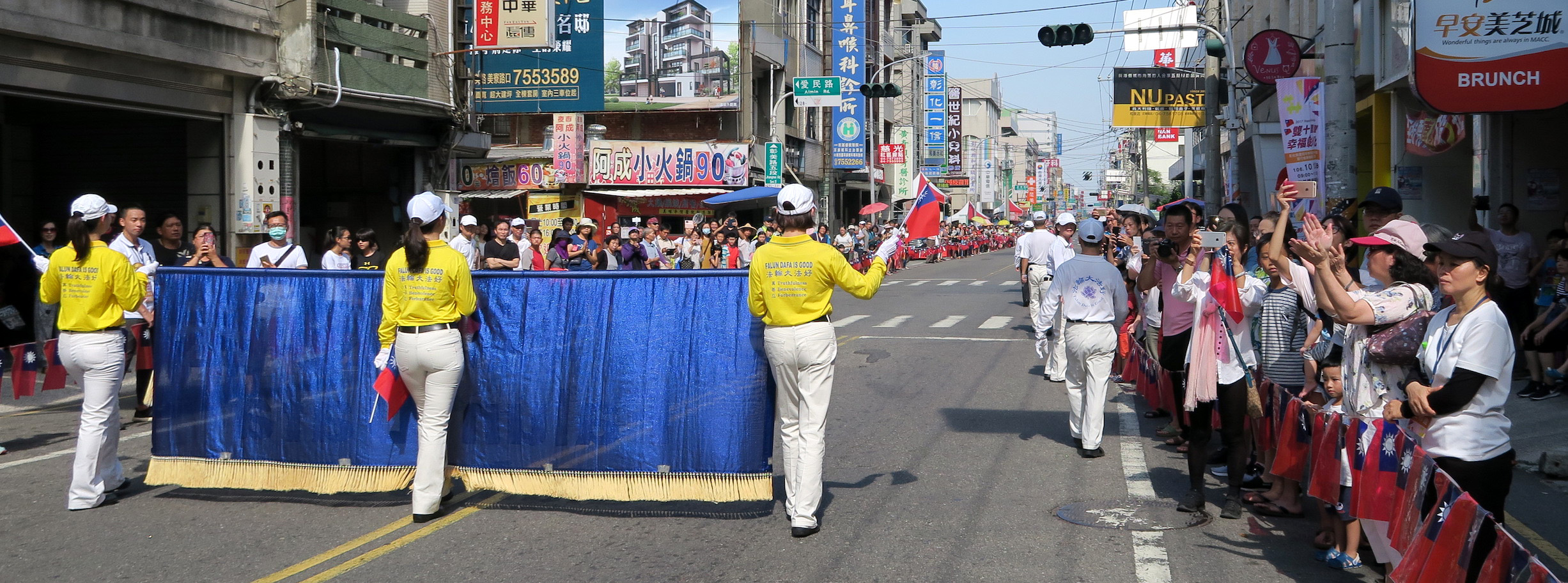 “非常感佩你们的精神与纪律”,连续两年天国乐团都获邀为双十节庆祝遊行的开道表演团体,多位民意代表、政府官员都赞扬法轮功学员的表现,更感谢他们无私的付出。“雄壮威武、振奋士气!”民众的喜爱也在夹道欢迎、拍照纪录的热烈场面中展现无遗。