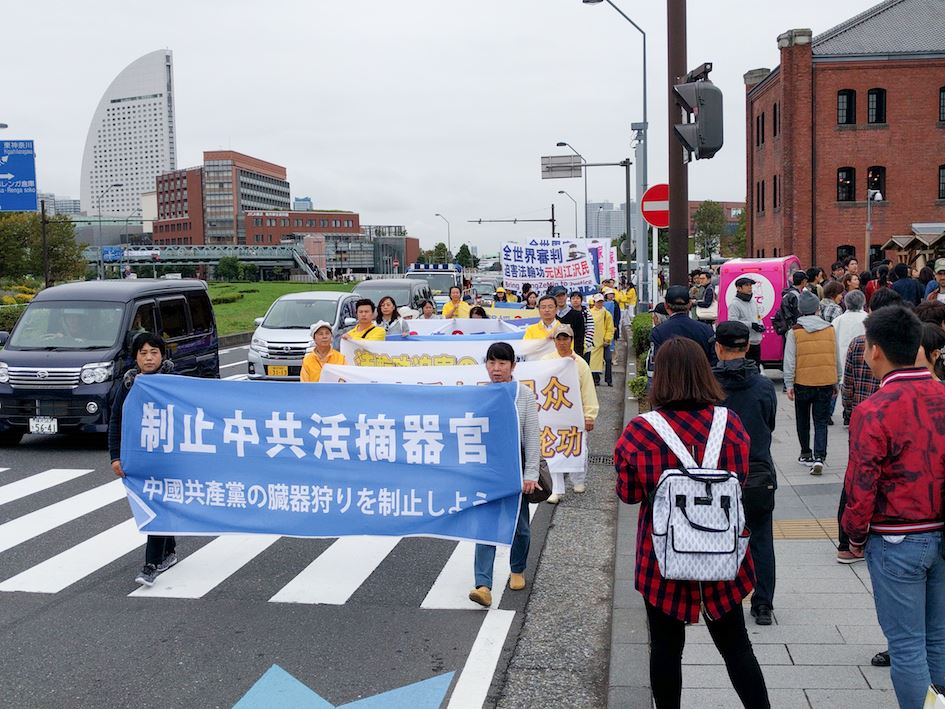 观看游行的两位日本青年说:“这样的事情在日本是绝对不可能发生的,我们声援制止这样的事情。”