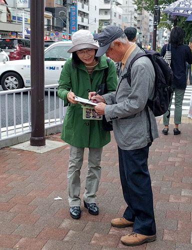 一位日本老婆婆说:“我已经签了名。第一次听到这样的事情太令人震惊了,这太可怕了,我要回去告诉我的家人。”