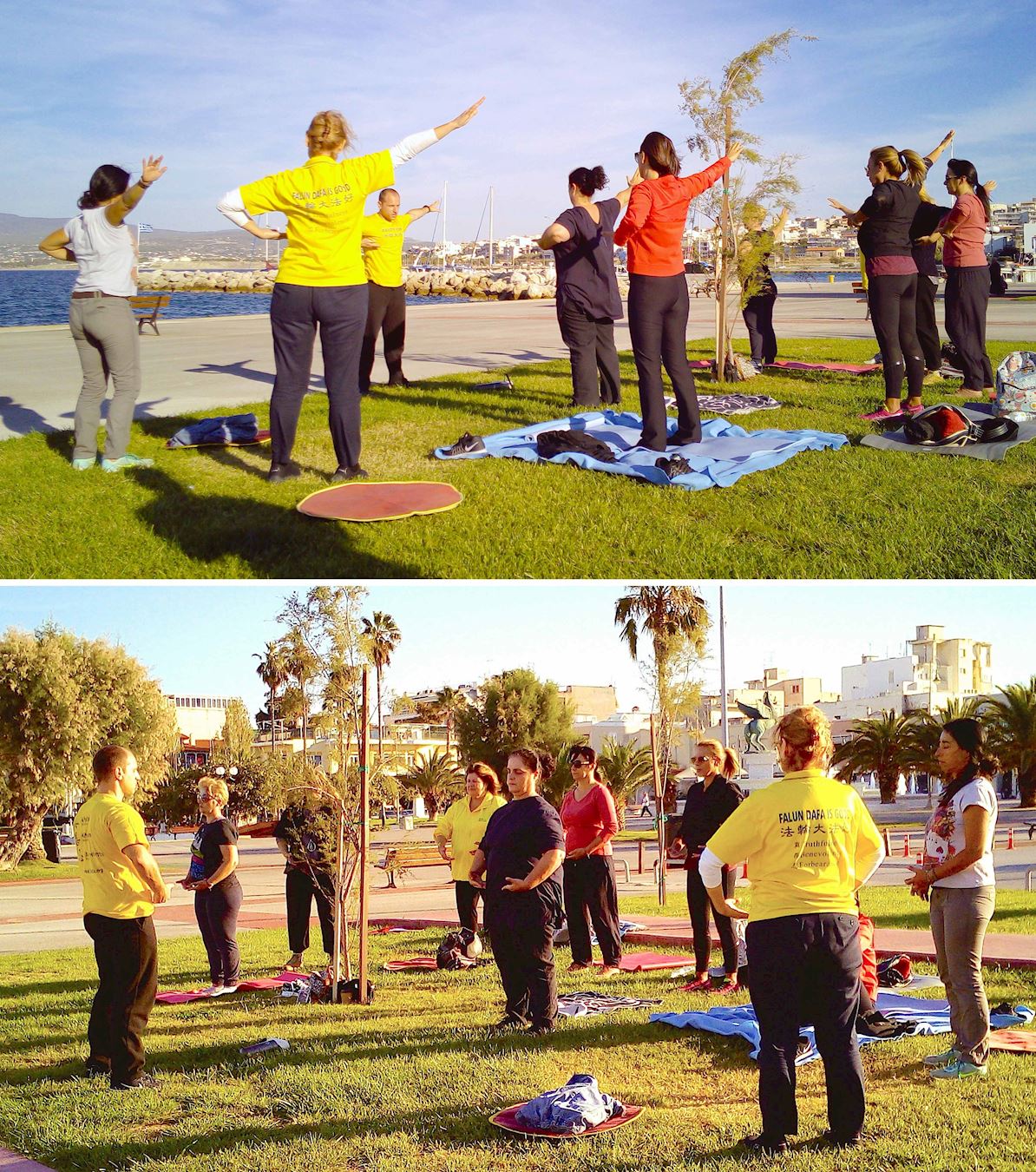 一个年轻人说,我在日本的时候,看到过法轮功,也跟着他们学炼过功,这次在希腊能够遇到法轮功太好了。你们教功时,我大概还记得以前学过的动作。