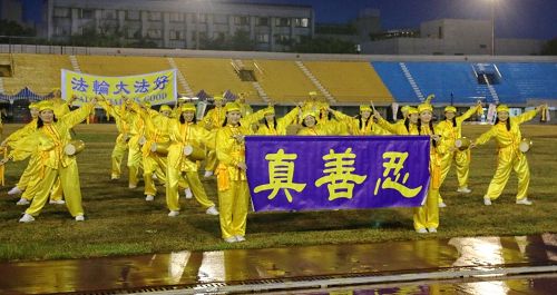 ![]() 图1~2:十月十五日台湾法轮大法腰鼓队,受邀为二零一七年台湾马拉松in苗栗开场表演,不畏风雨的精彩演出,获得热烈掌声。 |