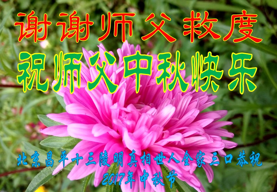 在2017年中秋节到来之际,我代表全家十五口恭祝师尊中秋节快乐!感谢师尊慈悲救度!