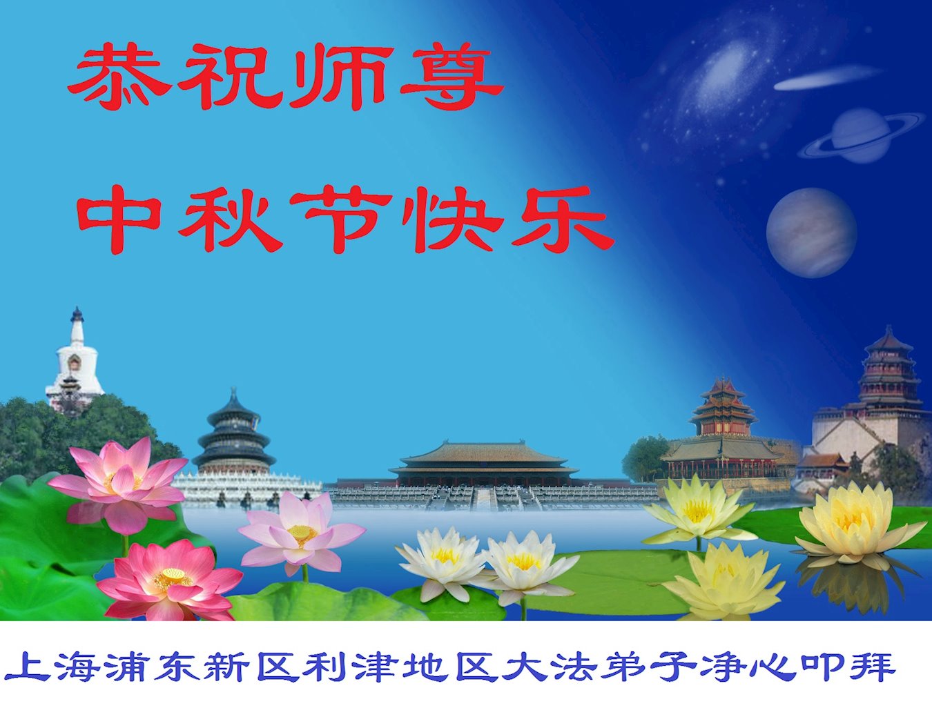 <英文版: http://en.d2s3ombhnov3zf.cloudfront.net/html/articles/2017/10/3/165785.html>贺卡集锦:恭祝大法师父中秋节快乐