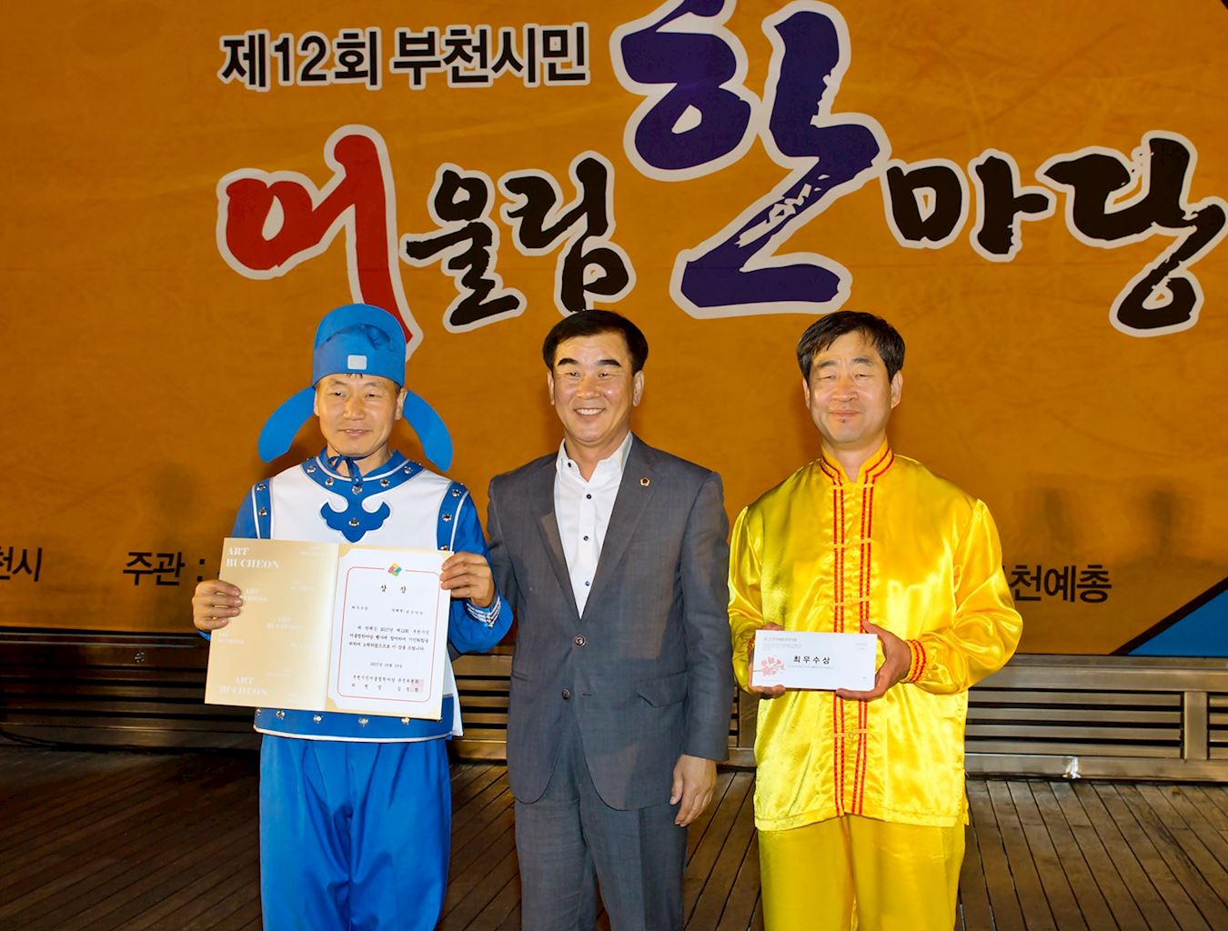 ![]() 图6:韩国京畿道议会文化观光委员长(中)给参加本次庆典活动获一等奖——最优秀奖的法轮功团体颁奖。 |