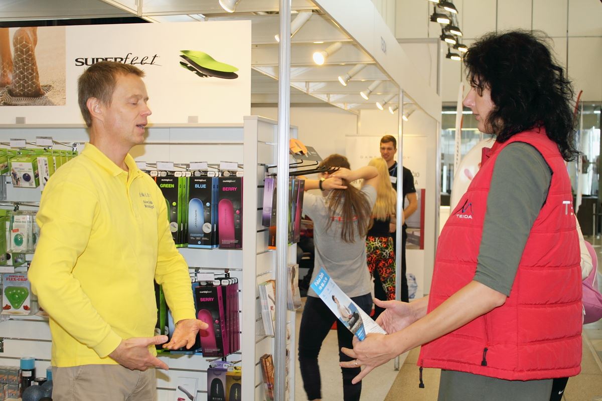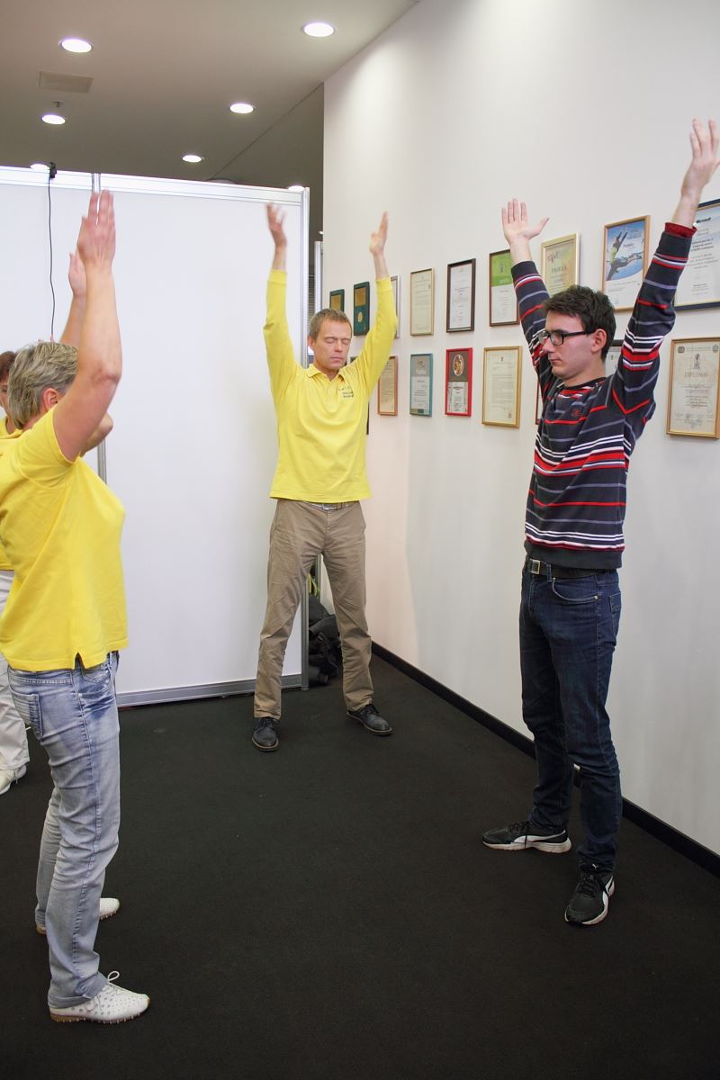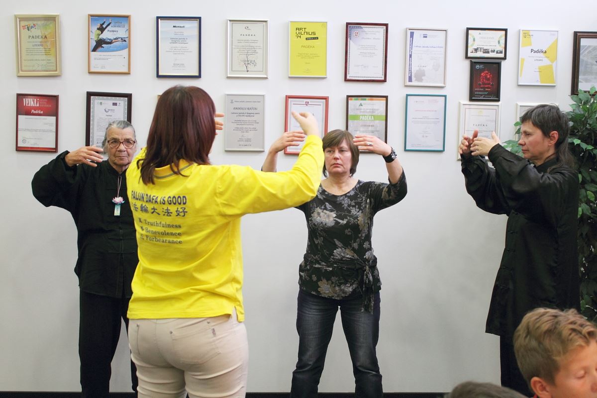 十月十四日,和立陶宛毗邻的拉脱维亚法轮功学员们来到体育节,向人们介绍法轮大法。法轮功学员的展位上摆放了立陶宛文、拉脱维亚文、俄文和英文的真相材料。法轮功学员随着祥和的音乐演示着五套功法,并向民众讲述修炼法轮功带来的益处。