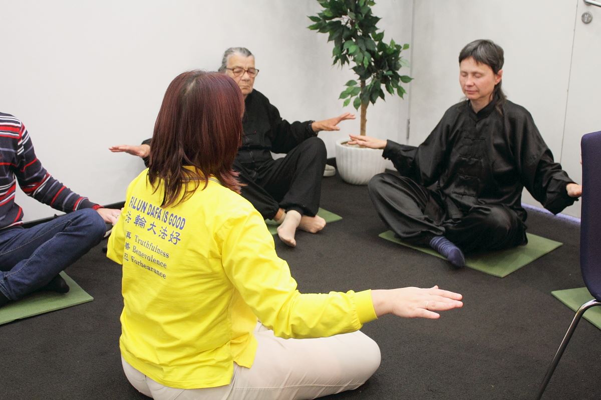 民众看到学员们舒缓的功法演示,纷纷过来学功。许多武术爱好者们对法轮功功法很感兴趣,他们表示,能感受到来自法轮功展位的能量。有些民众驻足观看法轮功学员的功法展示后表示,回去后要到当地炼功点学功。不少民众当场就学了法轮功五套功法。