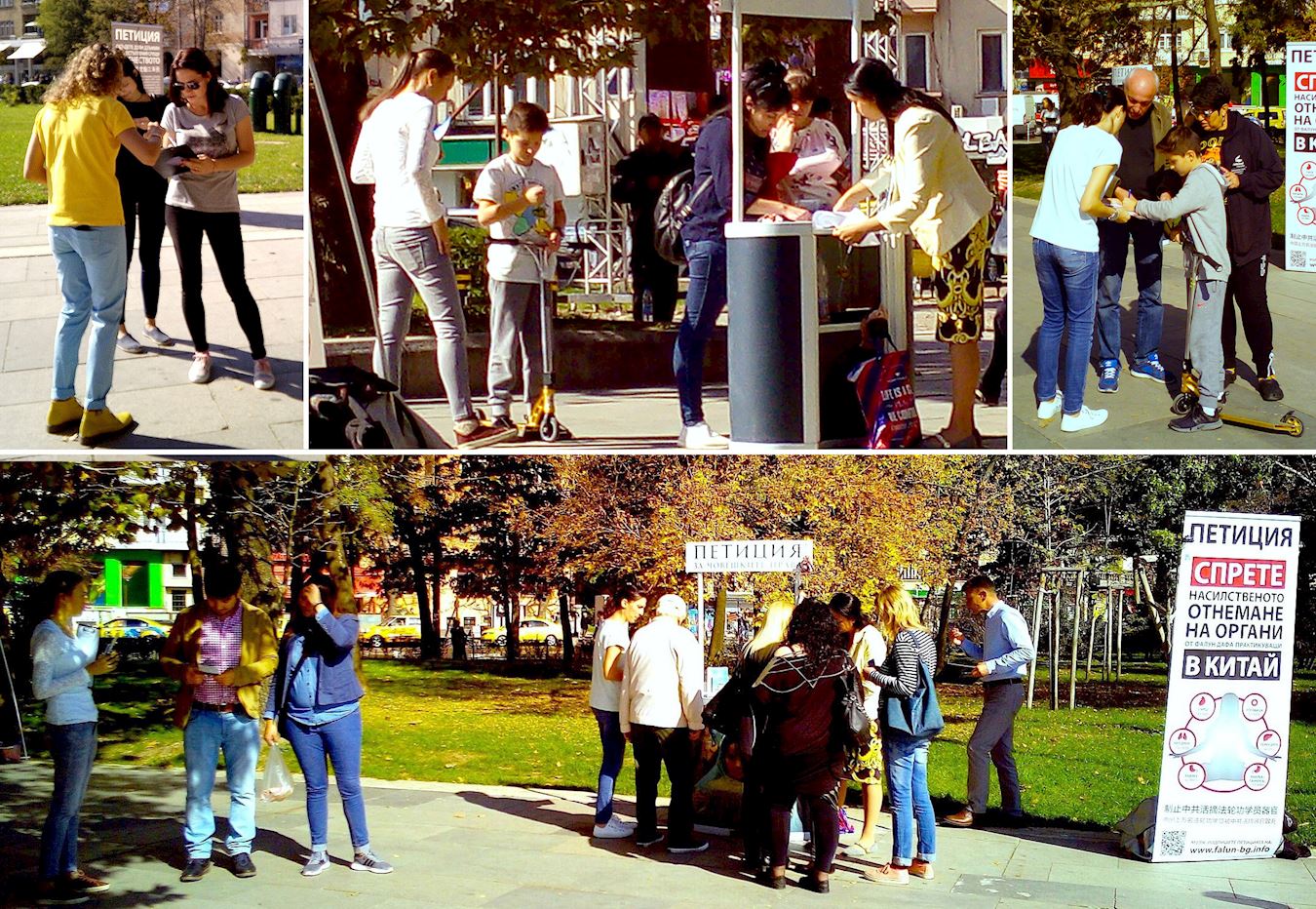 二零一七年十月十九日下午五点至七点,在首都索菲亚大学前的地铁站口,首都的部份法轮功学员们向过往行人介绍法轮功,传播法轮大法的美好,呼吁人们共同携手制止中共对法轮功长达十八年的迫害,征签反活摘。民众了解真相后,在震惊之余,不少人来到征签台前慎重签下自己的姓名表示支持法轮功学员反对活摘。一些人签名后表示希望中国的法轮功学员们早日获得自由。