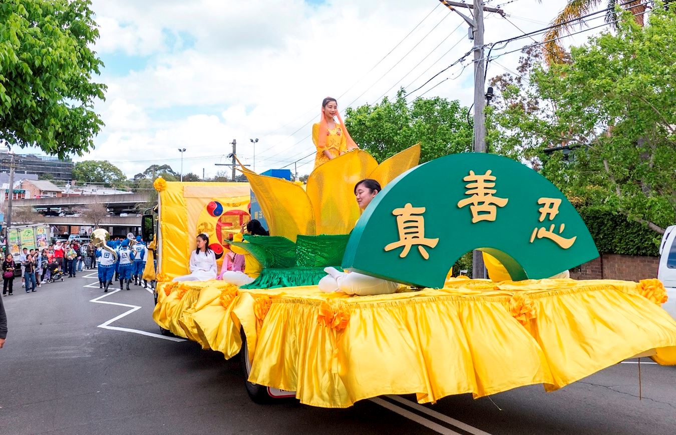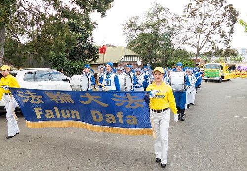 今年是第三十二届青苹果节庆典,被视为悉尼规模最大的街头艺术节,吸引了八万观众。法轮功学员的游行队伍由天国乐团领队,随后是腰鼓队和两年前被主办方莱德市(City of Ryde)评为一等奖的 “最佳花车”——“法轮大法好”花车,他们在游行队伍中展现美好和光明,受到观众和评委的赞赏。法轮功队伍所到之处,观众不断传出欢呼声和热烈掌声,很多人都拍照留念。